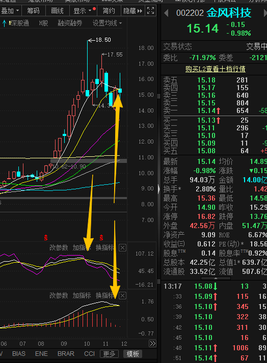 金风科技周线三死叉:均线、macd、kdj死叉共振
