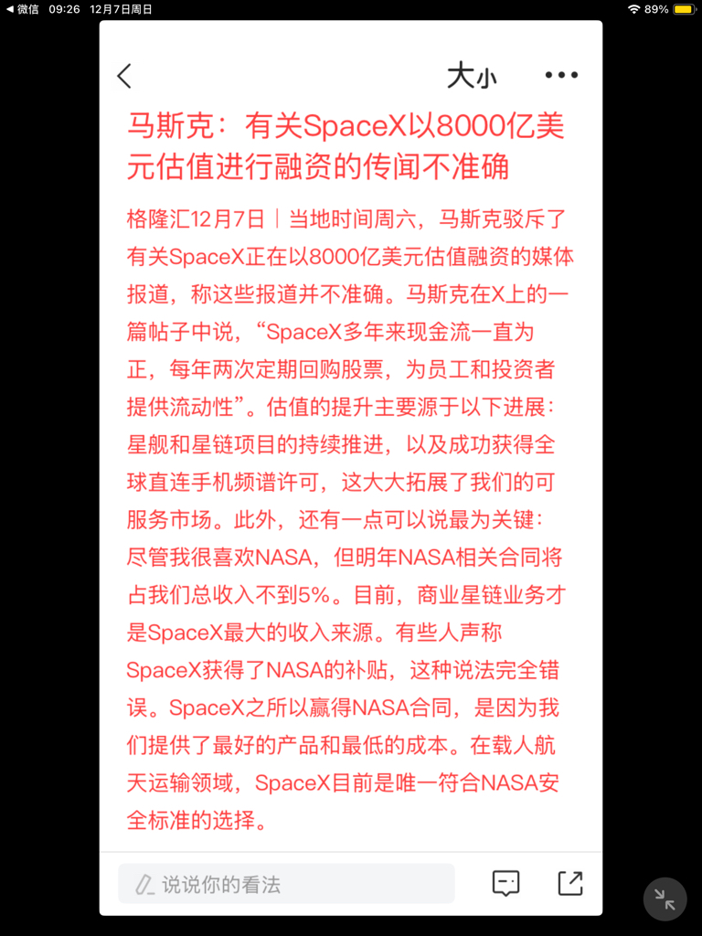 马斯克言中之意,8000亿美元估值还是少了点!中国商业航天加油!