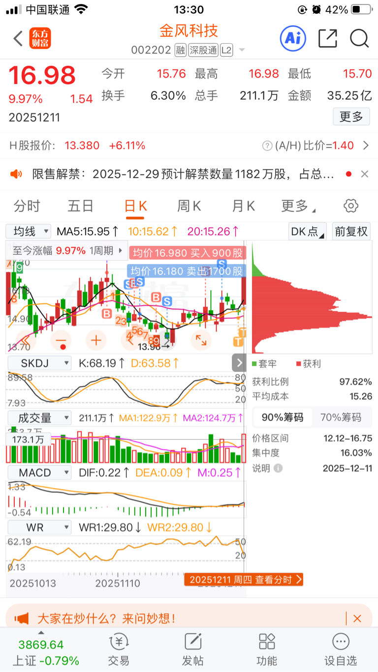 $金风科技(SZ002202)$ 的,让我做了个反T