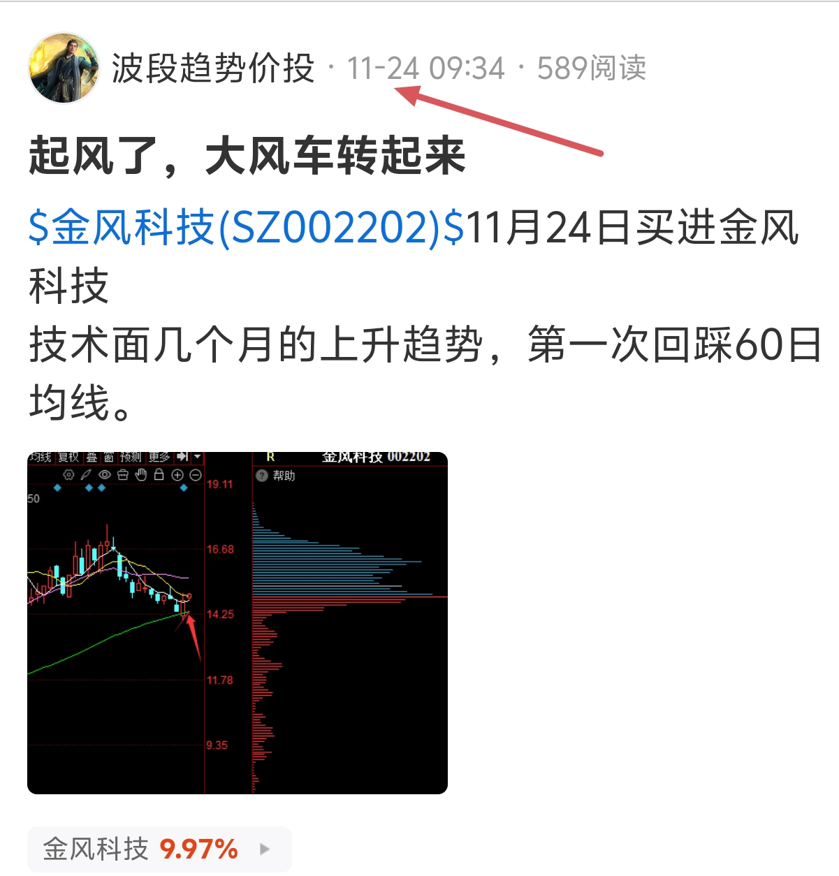 $金风科技(SZ002202)$ 金风科技主营风机制造,风电制氢。参股蓝箭航天,还有绿色甲醇项目长协订单。今天这个贴不是催票。因为我买的早。14月24日在60日均线回踩的时候就买进了。