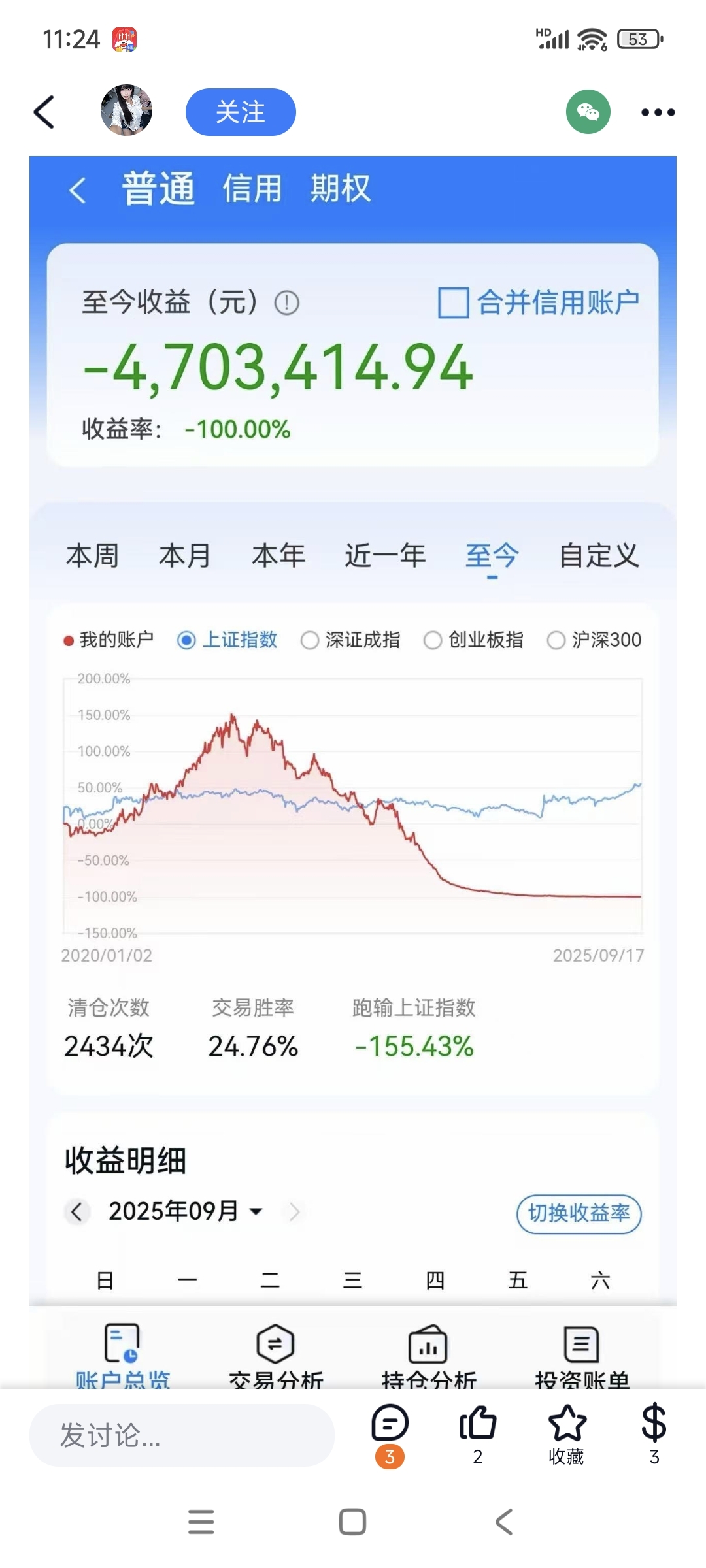 $金风科技(SZ002202)$ 5年交易2434次亏损470万,拿着不动绝对不会亏,5年时间,只要不退市,大部分都能涨回去