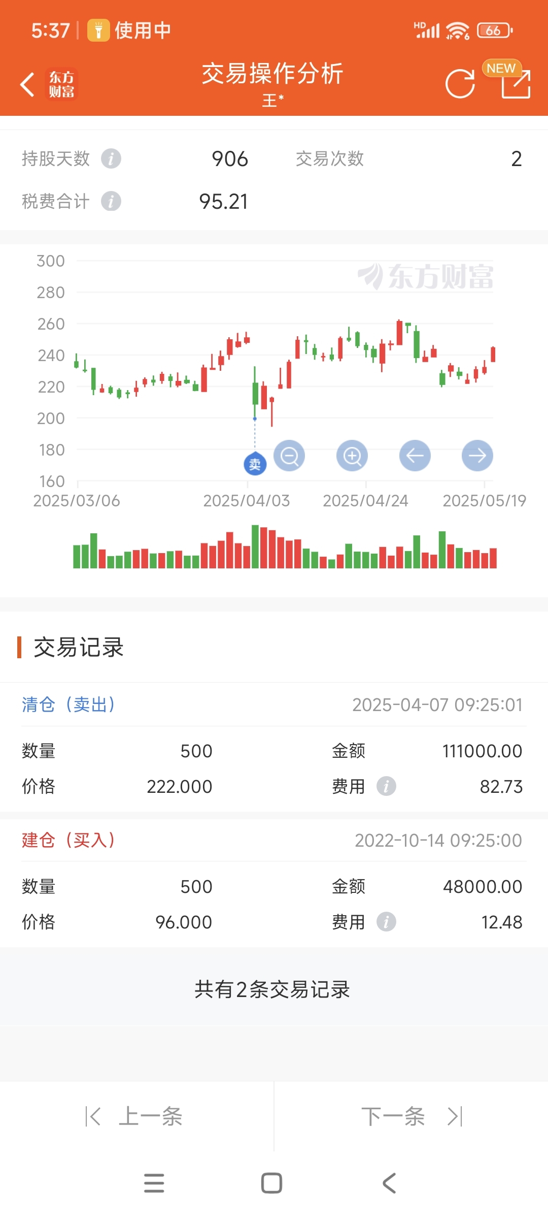 $金风科技(SZ002202)$ 百济神州22年10月14号买,2025年4月7号卖,仅交易2次赚的最多,天孚通信买来卖去,卖飞了仅赚20%,天孚交易24次赚了40%涨20倍