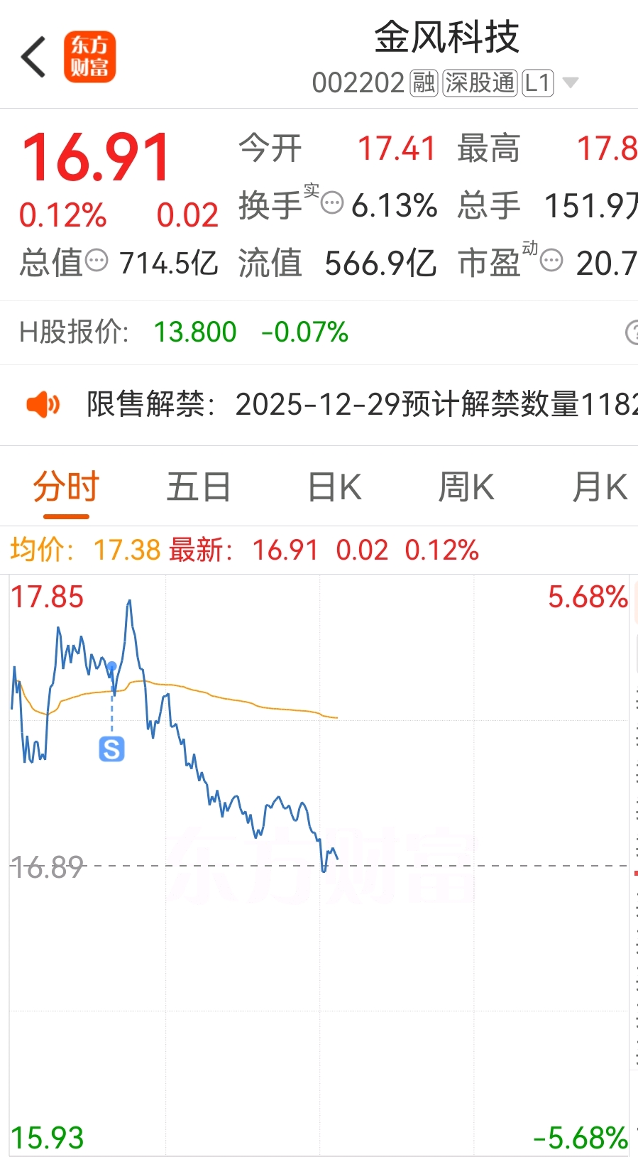 $金风科技(SZ002202)$ 到多少才能接回来啊大佬们