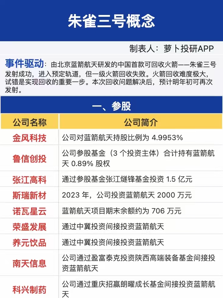 $金风科技(SZ002202)$ 家人们鲁信已经板了,金凤对蓝箭航天的持股比例是8%左右,鲁信只有0.89%,金风科技是蓝箭航天IPO最大受益者,蓝箭航天火箭落地只距离回收点几米,长征十二甲距离落地点2km,谁强谁弱相信大家清楚