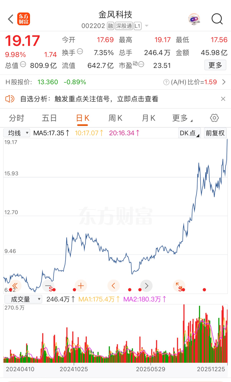 最好的圣诞礼物!金风科技股价创出今年新高!战胜不断减持的和谐健康!战胜外资大摩、