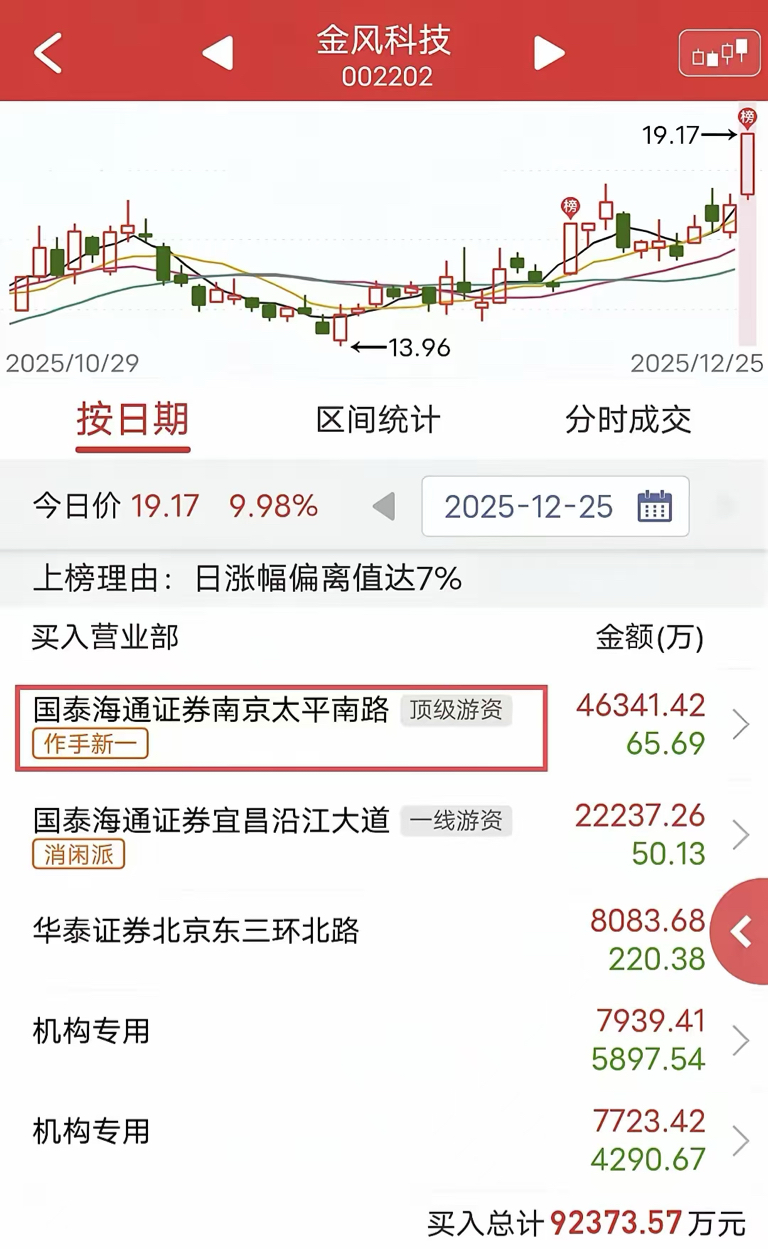 作手新一爆买4.6亿:今天金风科技盘中涨停。盘后龙虎榜显示,作手新一大手笔爆买4