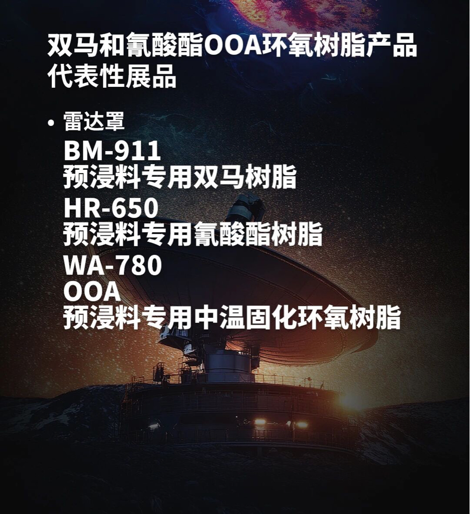 惠柏新材,积极探索航空航天轻量化材料暨高性能预浸料树脂应用。开发出新复合材料环氧