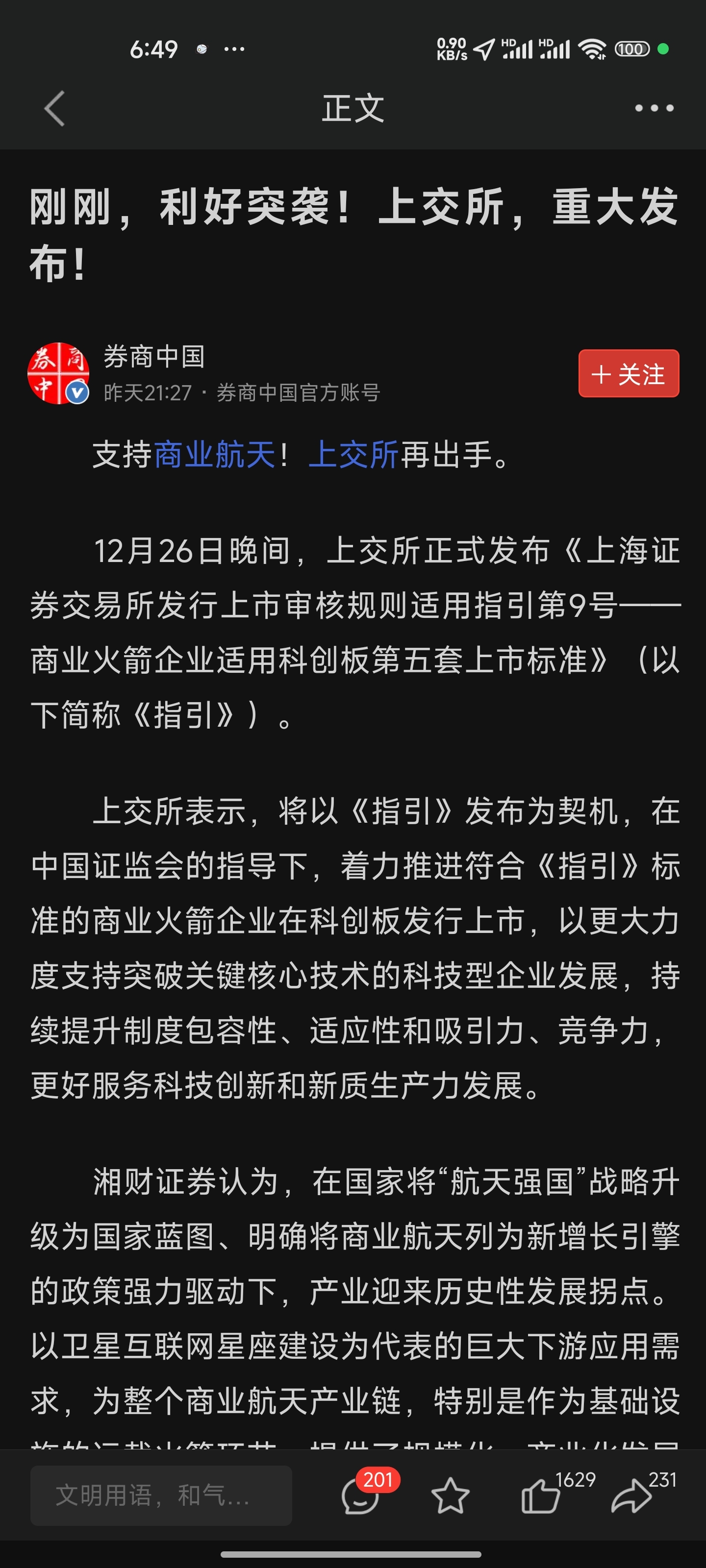 直接利好蓝箭航天参股公司