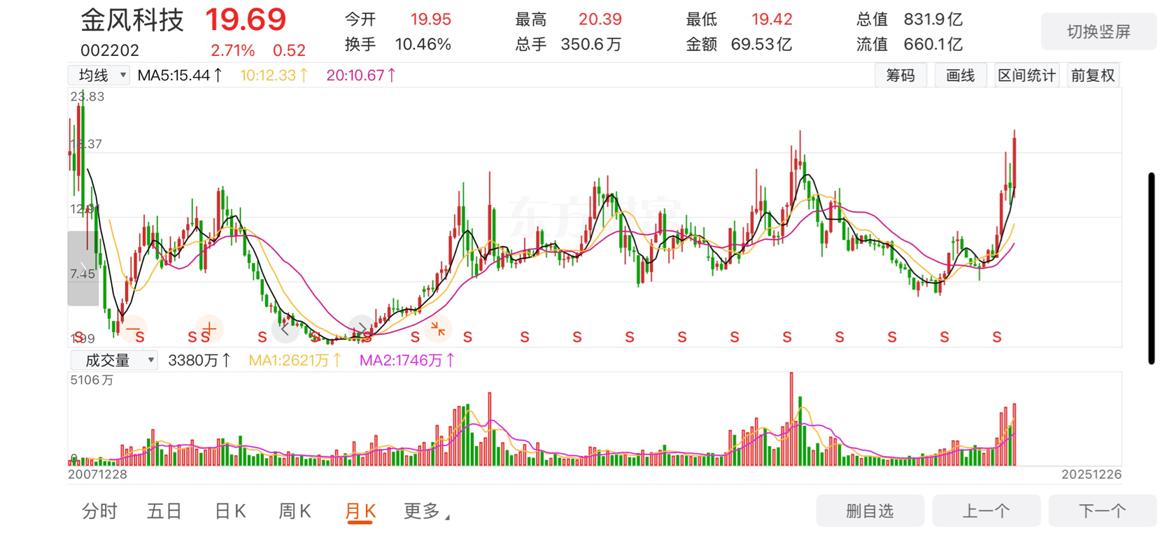 金风科技A股上周上涨20%(H股圣诞休市),收盘股价与历史新高一步之遥,市值83