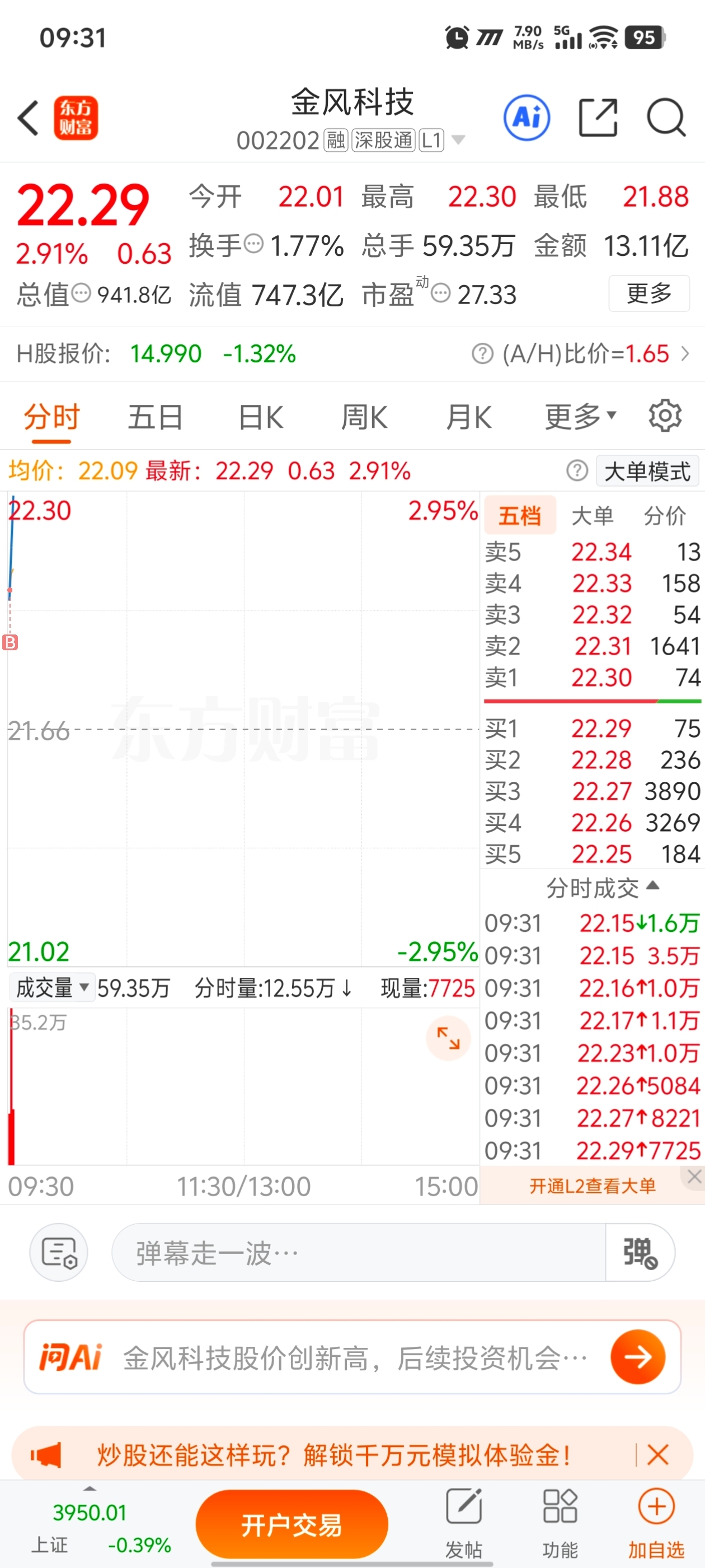 开盘就上。