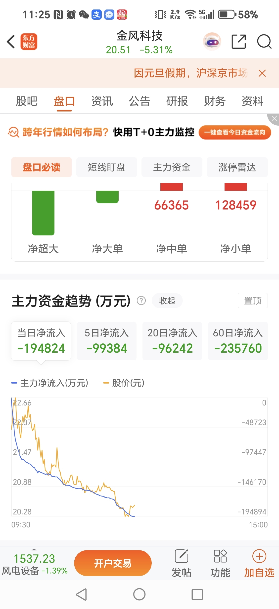 $金风科技(SZ002202)$ 主力净流出20个亿,下午只会继续,不会回流了,今天上午进来的全部吃面