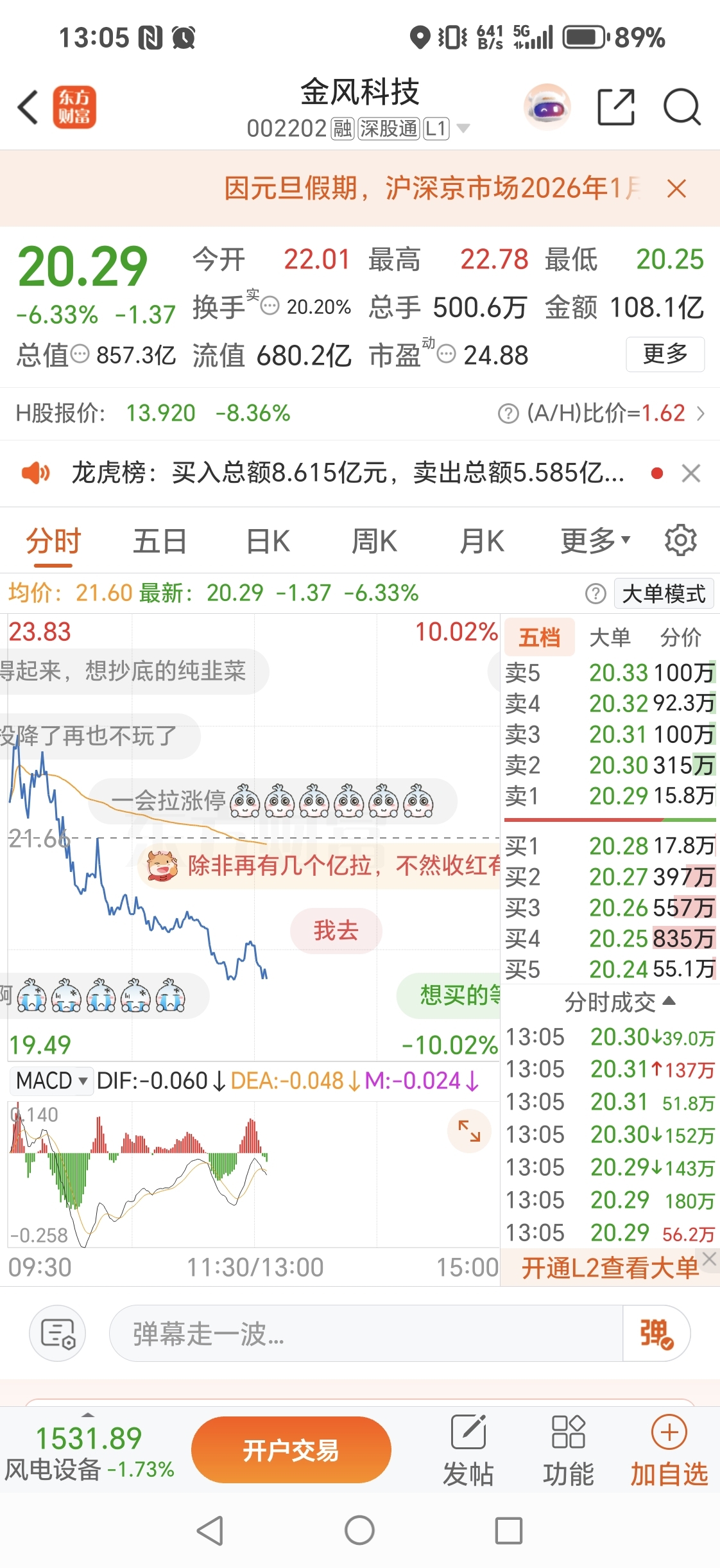 $金风科技(SZ002202)$ 从一个坑跳到另一个坑,一天十几个点大面,撑着了,成交额100多亿,主力净流出二十个亿,主力资金趋势图线一直往下,没停止,不拐头,到底都卖给谁了,散户有这么大实力吗?今晚看都谁买了