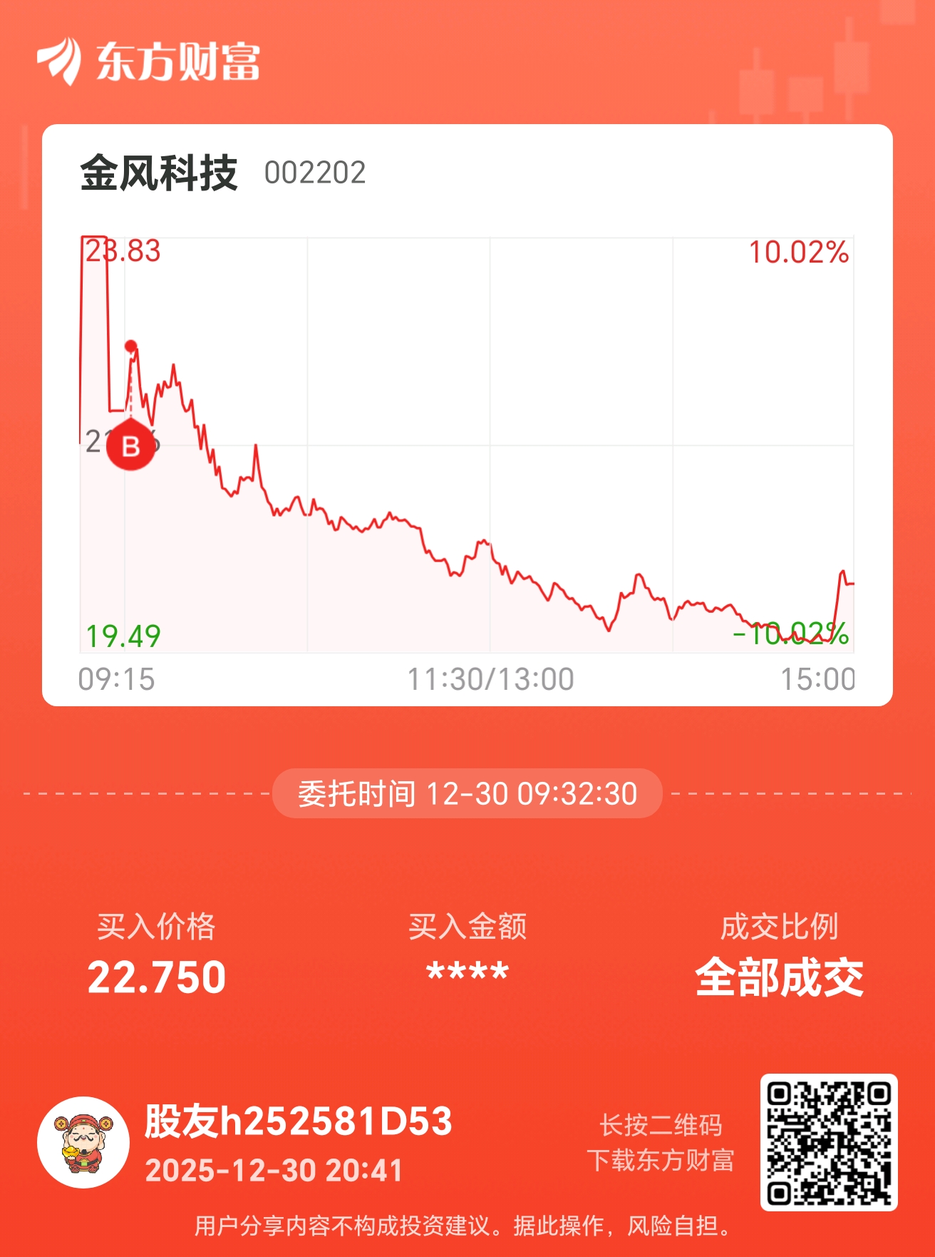 温馨提示: 1.根据《证券法》规定,禁止编造、传播虚假信息或者误导性信息,扰乱证券市场;2.用户在本社区发表的所有资料、言论等仅代表个人观点,与本网站立场无关,不对您构成任何投资建议。用户应基于自己的独立判断,自行决定证券投资并承担相应风险。《东方财富社区管理规定》