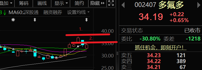 $多氟多(SZ002407)$周一股价回踩关键支撑位后止跌企稳,昨天顺势强势拉升并收出一根长阳线,量价配合十分到位。尽管主力呈现小幅流出的状态,但流出比例不大,对盘面的影响相对有限。目前上方5日均线是第一压力点,37.3附近是第二压力点,若今天能跳空高开突破5日均线压制,接下来有望挑战第二压力位,弱转强的形态也将正式确立,后续有望走出一波上涨行情。