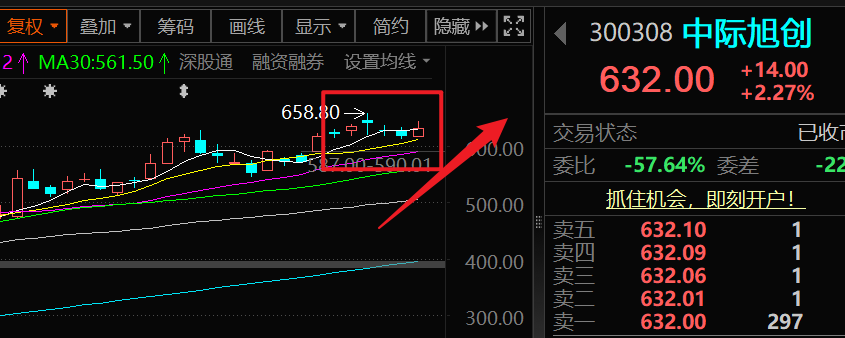 中际旭创:此前接连走出三根阴十字线,走势陷入短暂盘整,昨天强势突破5日均线压制并成功站稳收阳,弱转强的形态十分突出。同时当天收出放量上影线,主力呈现持续流入的状态,整体趋势向好。目前上方历史高点存在压制,下方5日均线支撑较强,若今天能跳空高开突破历史高位,上升趋势将进一步。