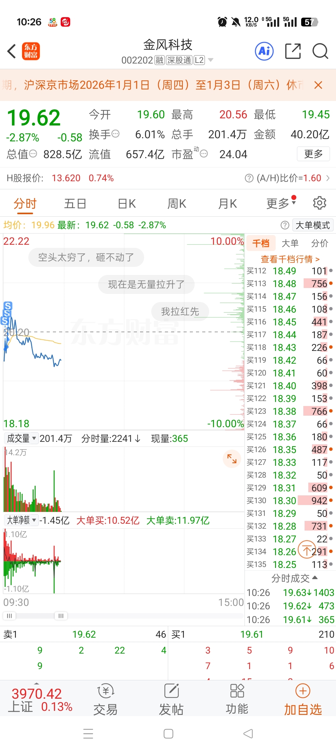 温馨提示: 1.根据《证券法》规定,禁止编造、传播虚假信息或者误导性信息,扰乱证券市场;2.用户在本社区发表的所有资料、言论等仅代表个人观点,与本网站立场无关,不对您构成任何投资建议。用户应基于自己的独立判断,自行决定证券投资并承担相应风险。《东方财富社区管理规定》