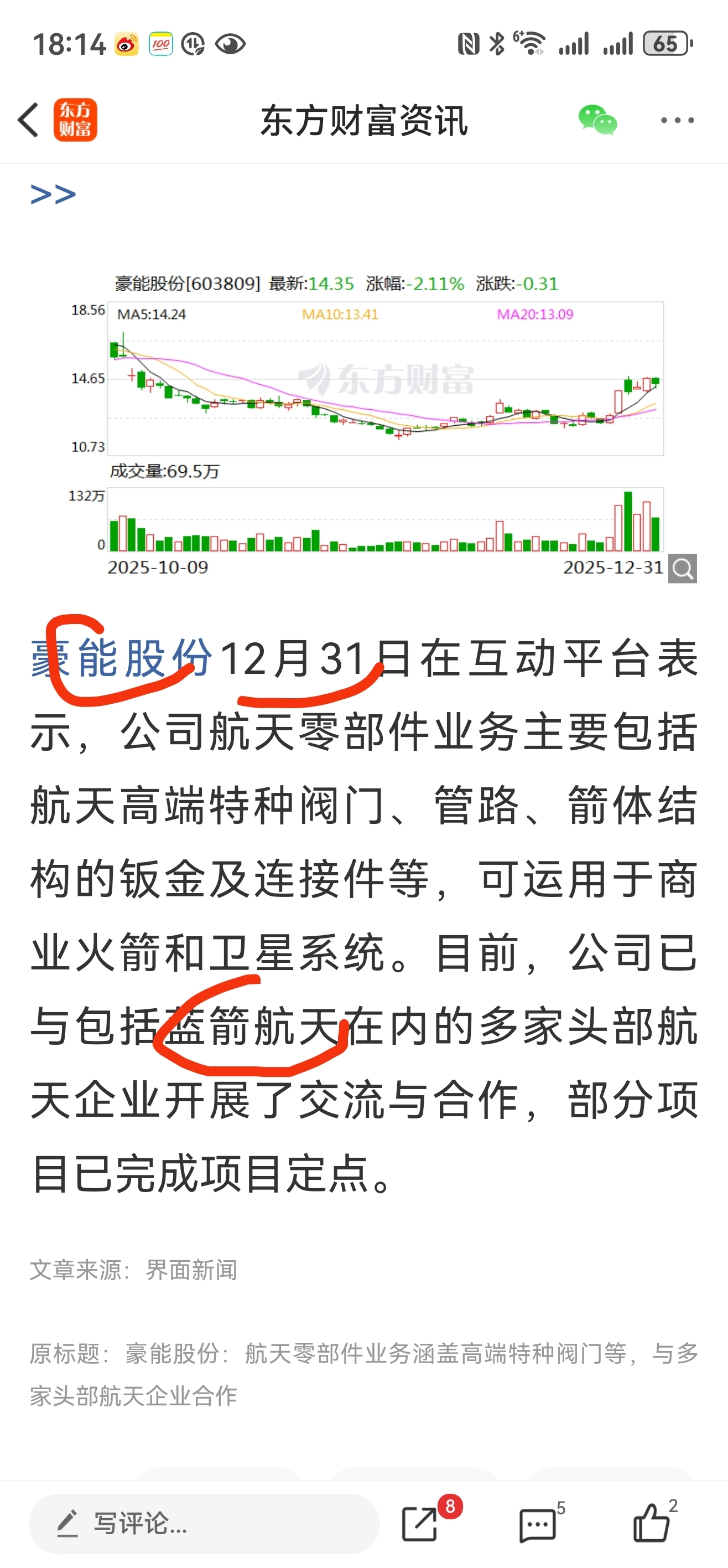 核心蓝箭航天合作公司豪能股份