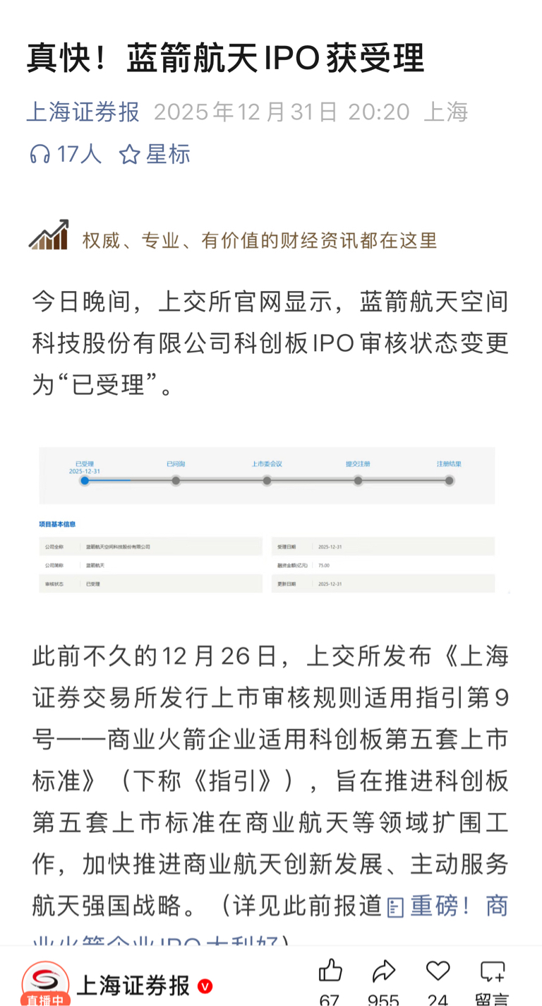 蓝箭凌云志,上市启新程!预祝金风连板迎新春!