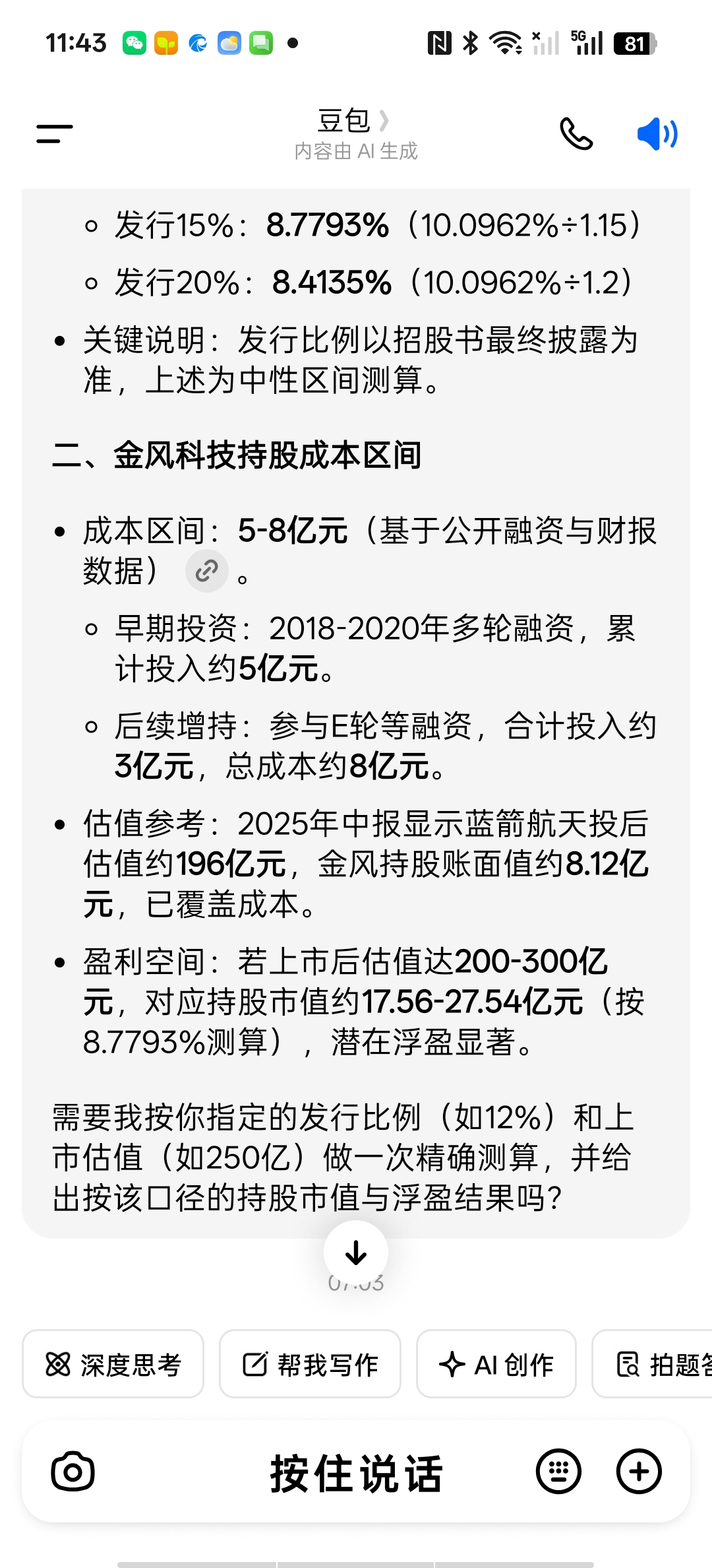 金风现主营风电收入可支撑现有股价,如果加上持股蓝箭航天最少溢价30%,就看主力如