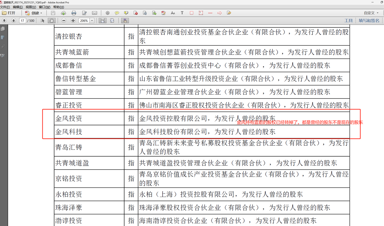 看了蓝箭科技的招股说明书,金风根本不是蓝箭的股东。只是曾经的股东。被坑了。