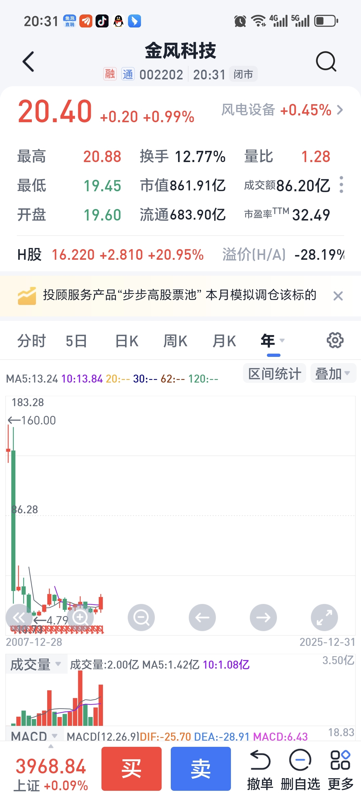 给大家发一个硬核的,看看金风科技以前的最高价格是多少!