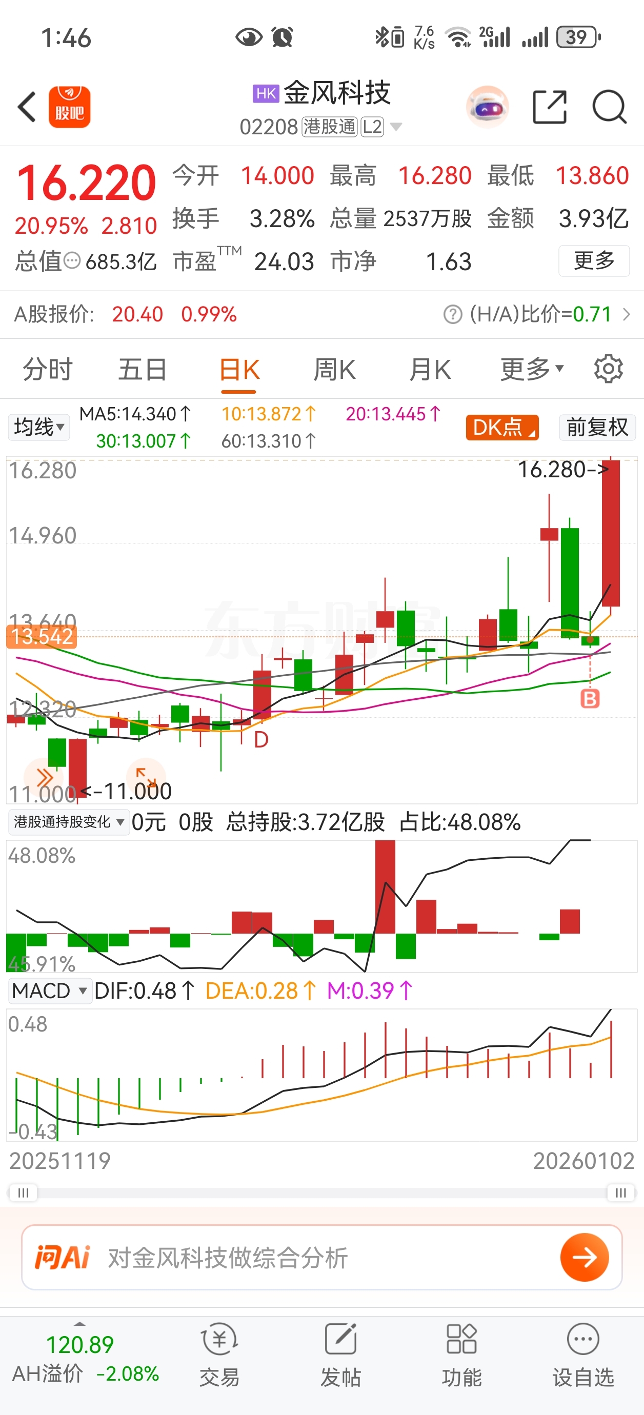 前天买了20000股,今天没想到港股开市,涨的有点懵