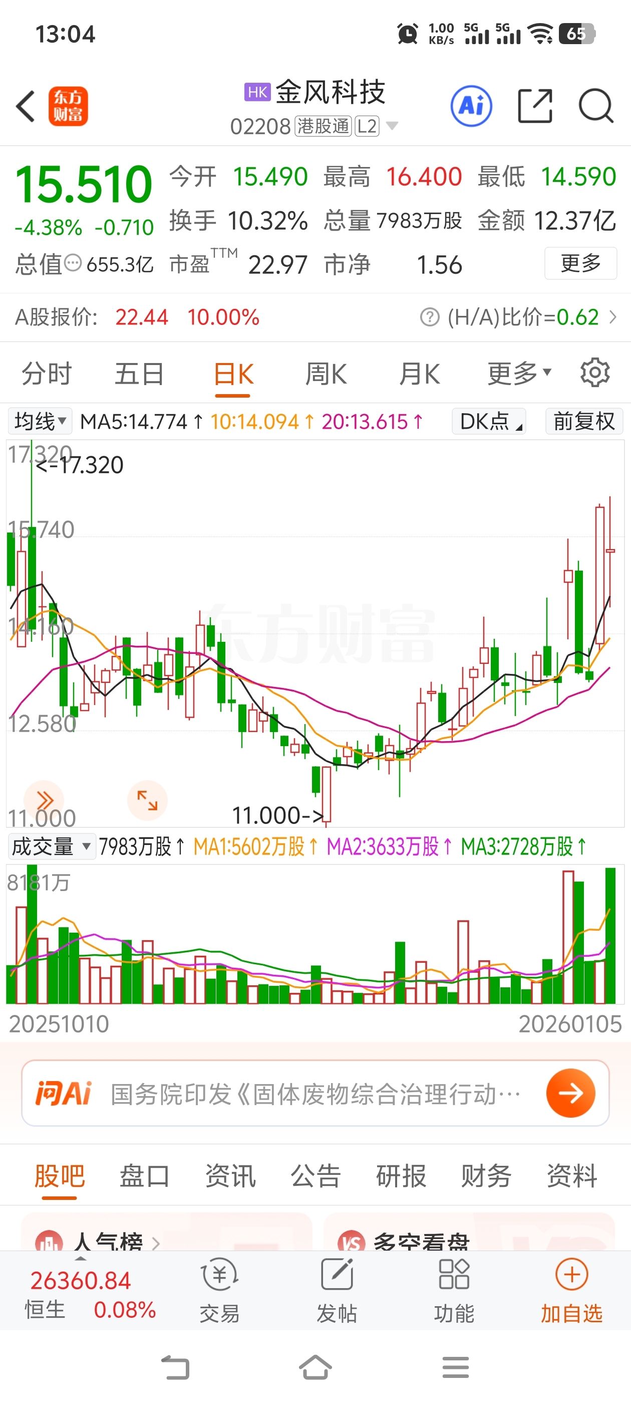 港股金风科技跌了,所以大A这边没信心开始兑现跑路了。