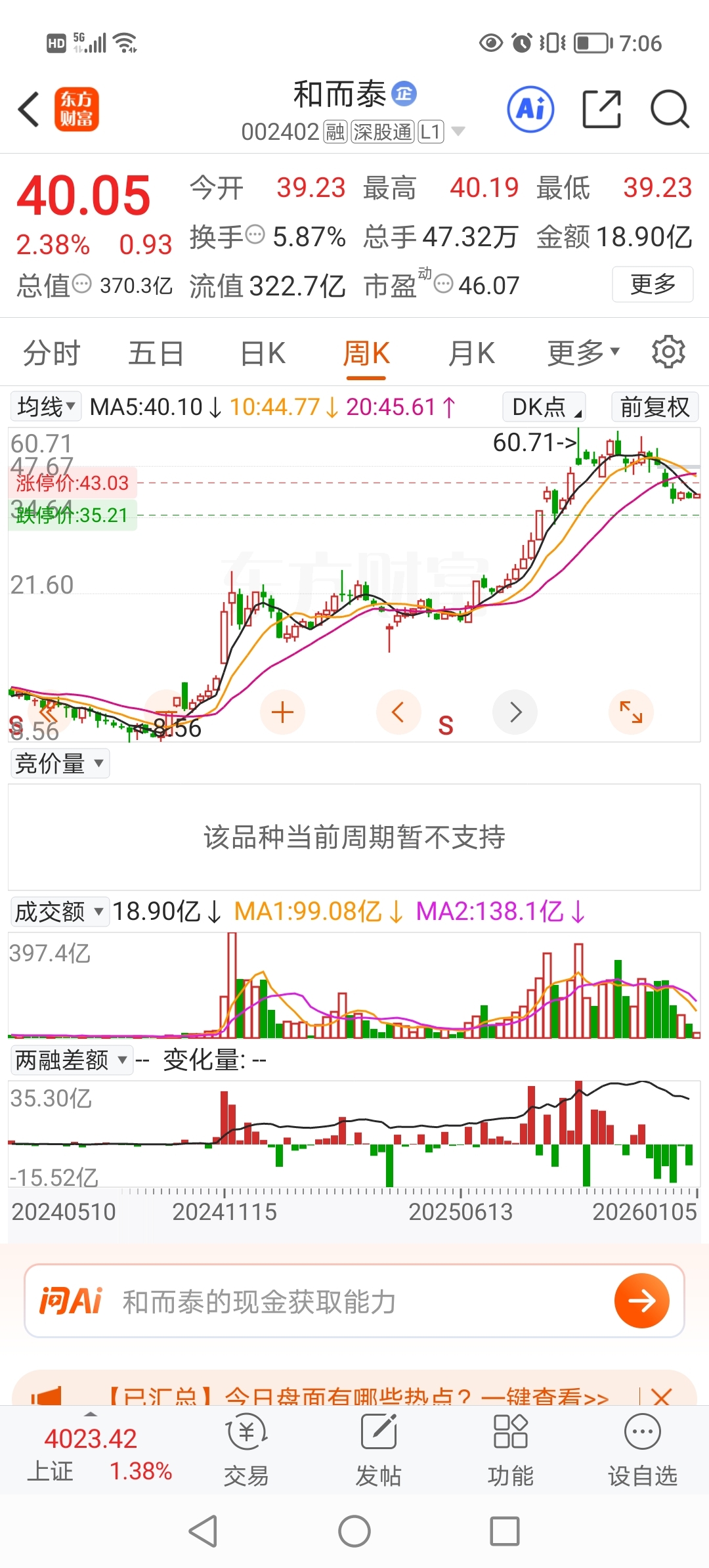 来,看看和而泰,曾经18那波,摩尔线程Ipo,涨了回调,我看不上他,最高拉到60