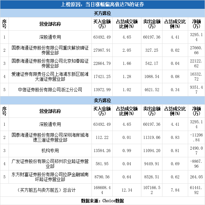 多主力现身龙虎榜,金风科技涨停(01-06)