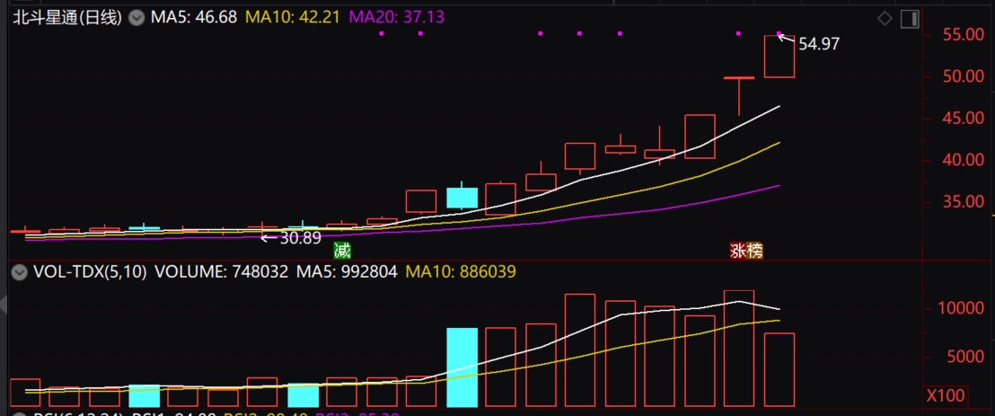 $中国卫通(SH601698)$走势依旧是龙头的强劲,虽然主力资金连续呈现流出,但是换手率跟上了,有分歧但是有资金做承接,多头占据优势。不过目前4连涨停,短期是有回调的需求的。一旦高开,或者无量上涨就要及时止盈为好。除非是41附近的支撑或者5日线附近放量企稳,才健康的上涨信号,也是倒车接人的机会。不过向我这种已经持仓的守住5日线看戏就好了。
