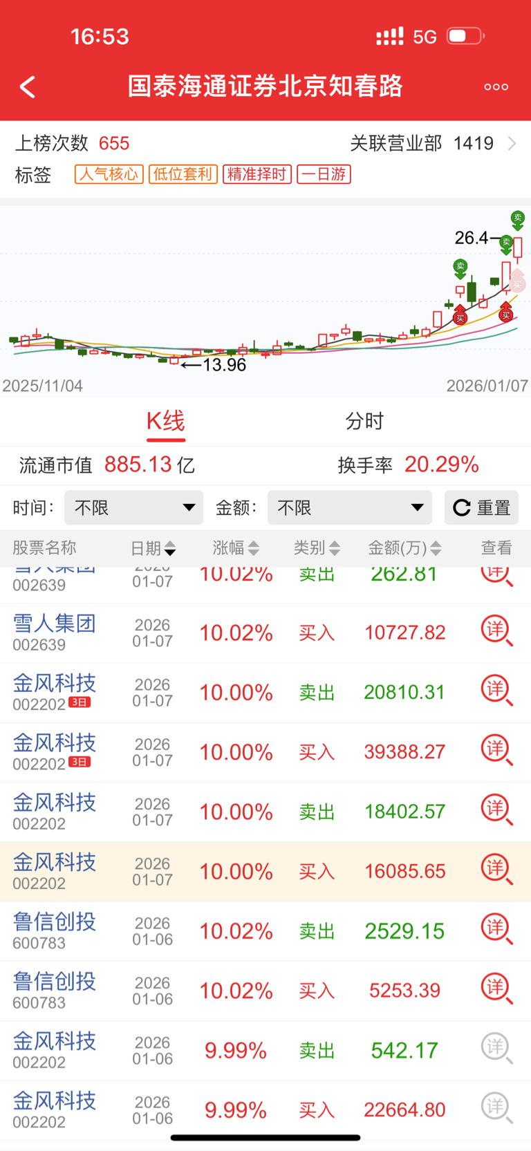 小群席位小号北京知春路。进来金风。鲁信。好多天怪不得买鲁信昨天2个亿。原来北京知