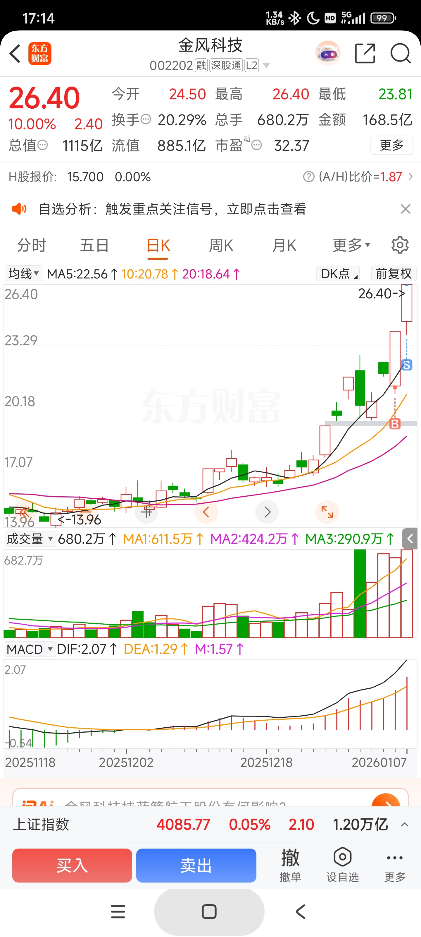 $金风科技(SZ002202)$ 两个涨停板,23%,知足,再见!