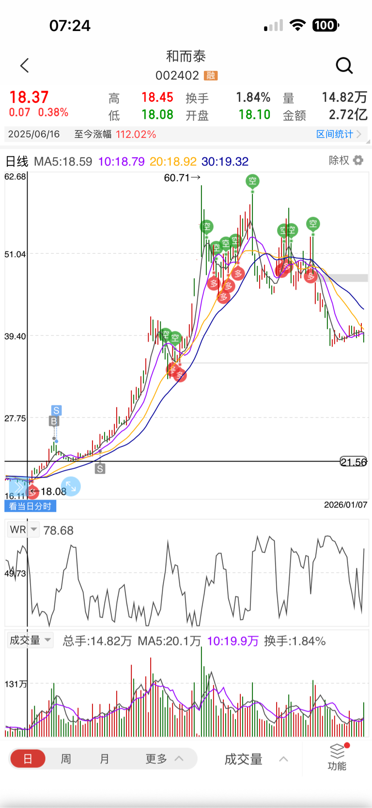 $金风科技(SZ002202)$ 这是持摩尔股权1%的和而泰在摩尔上市前的走势,金风直接加间接持蓝箭股权10.2%,持股比例10倍之多,所以,不用多说了。不过摩根那里不认同A股持股权炒作的形式,所以金风的港股不一定会跟着涨,这点要注意,资金还是来大A吧。