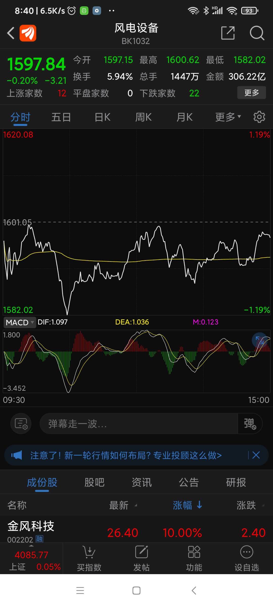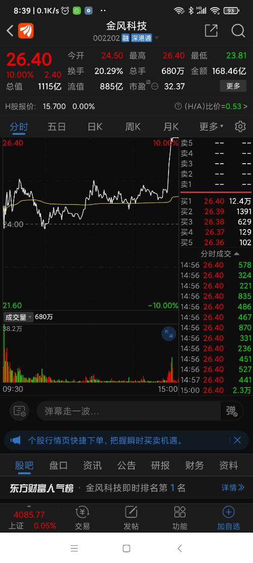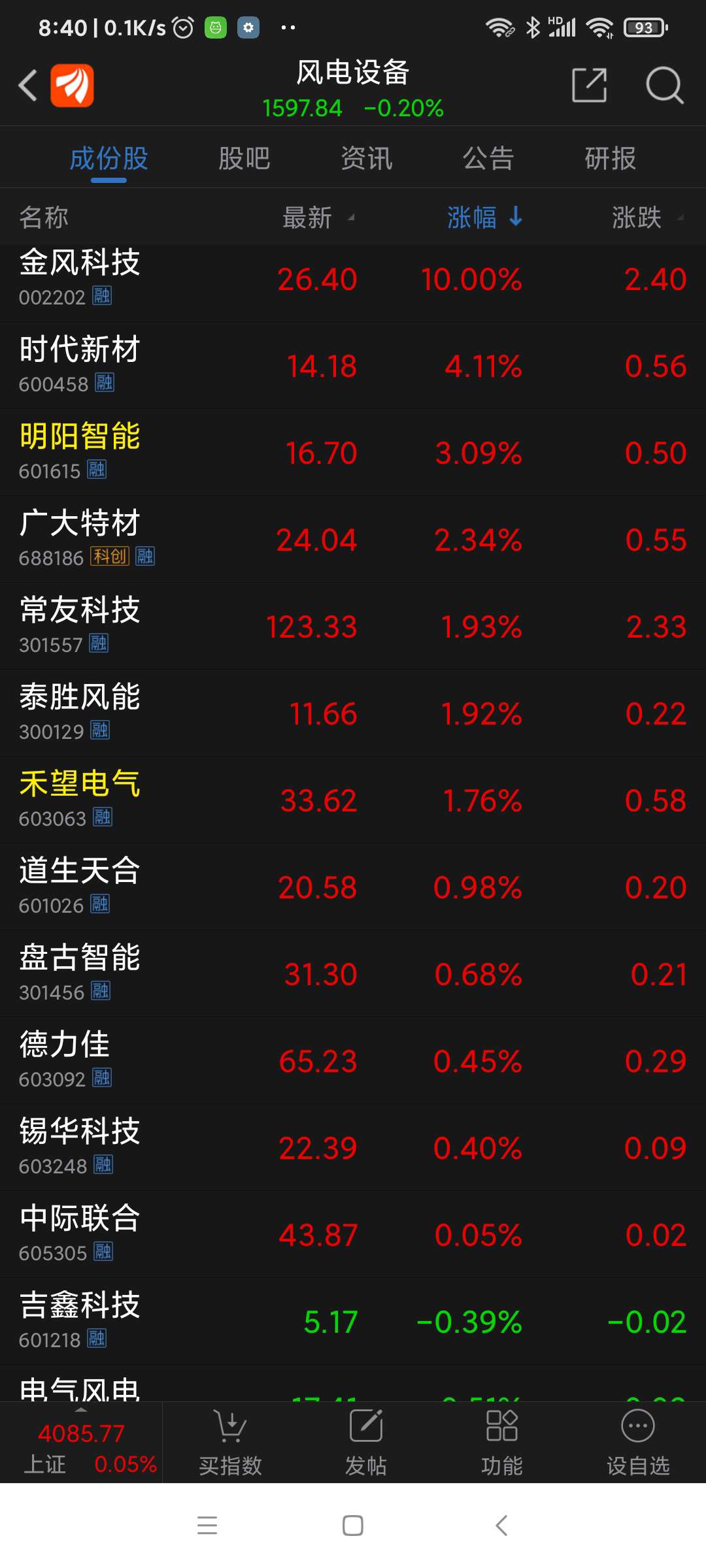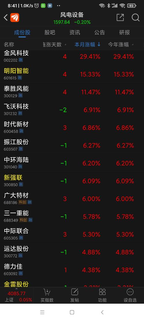 金风科技,昨日风电板块涨幅第一名。