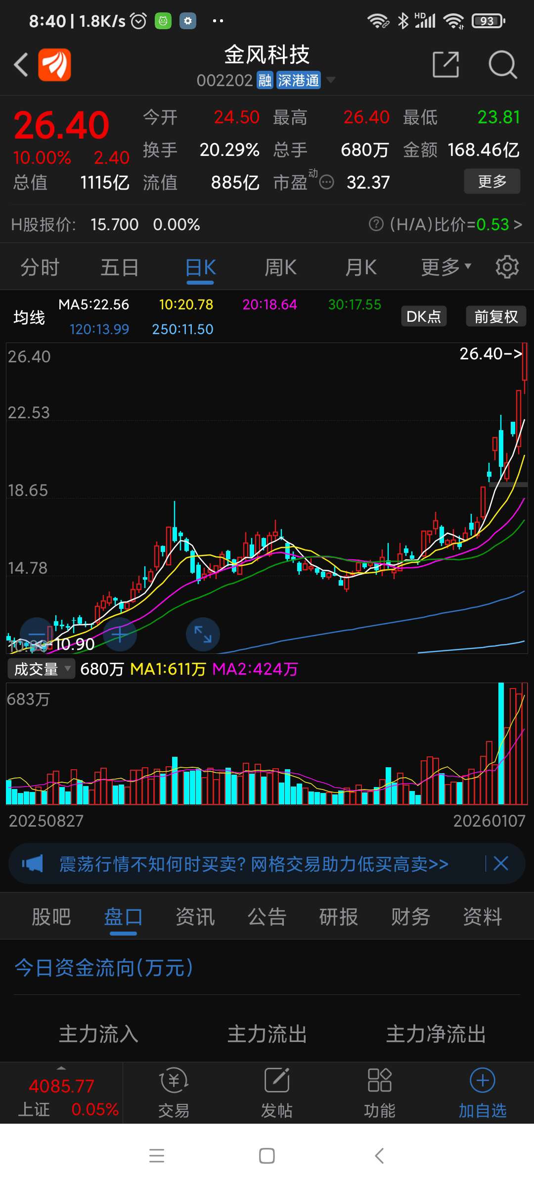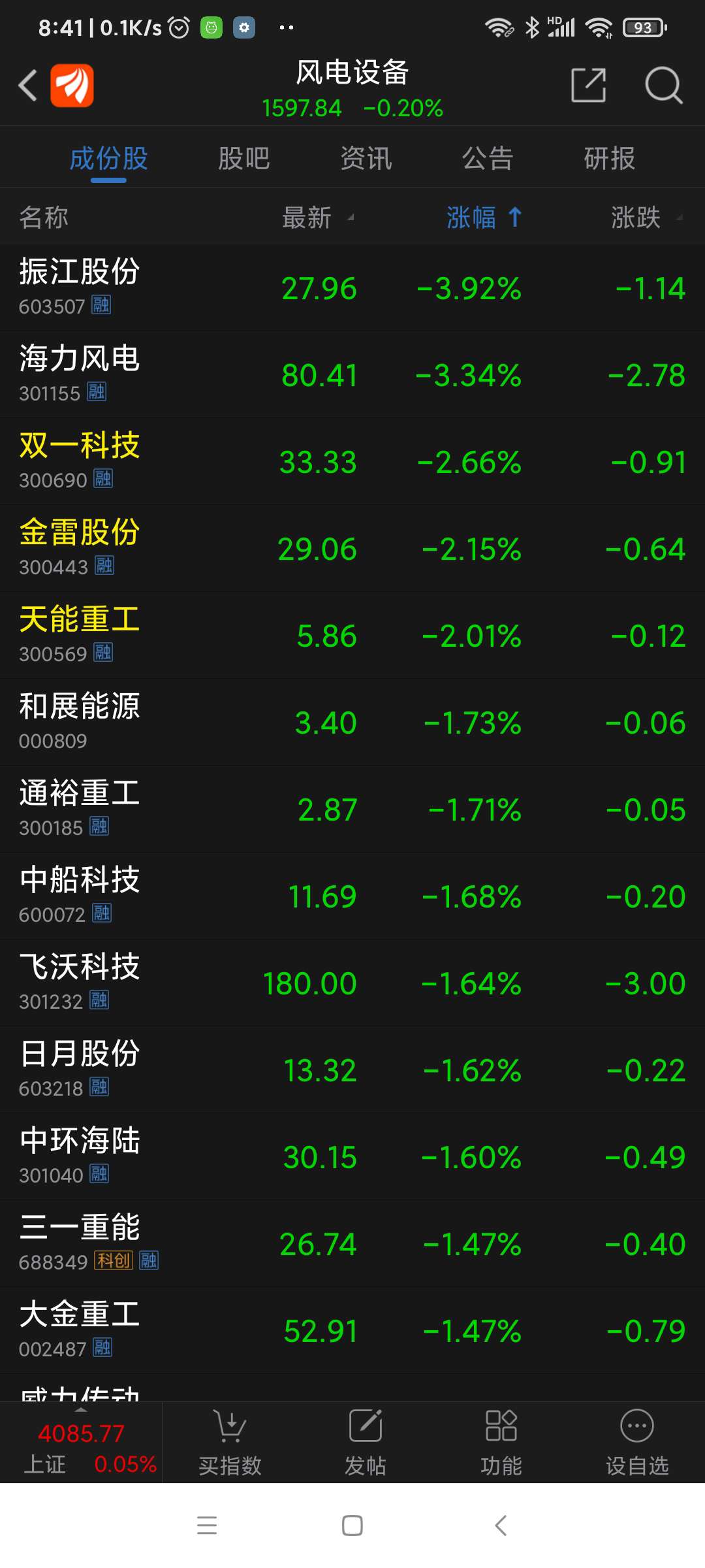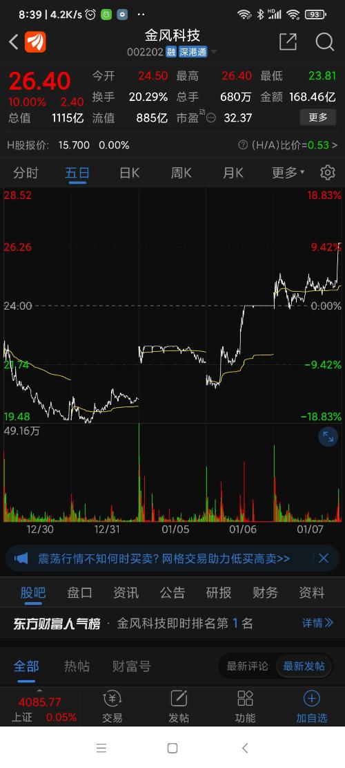 金风科技,昨日风电板块涨幅第一名。