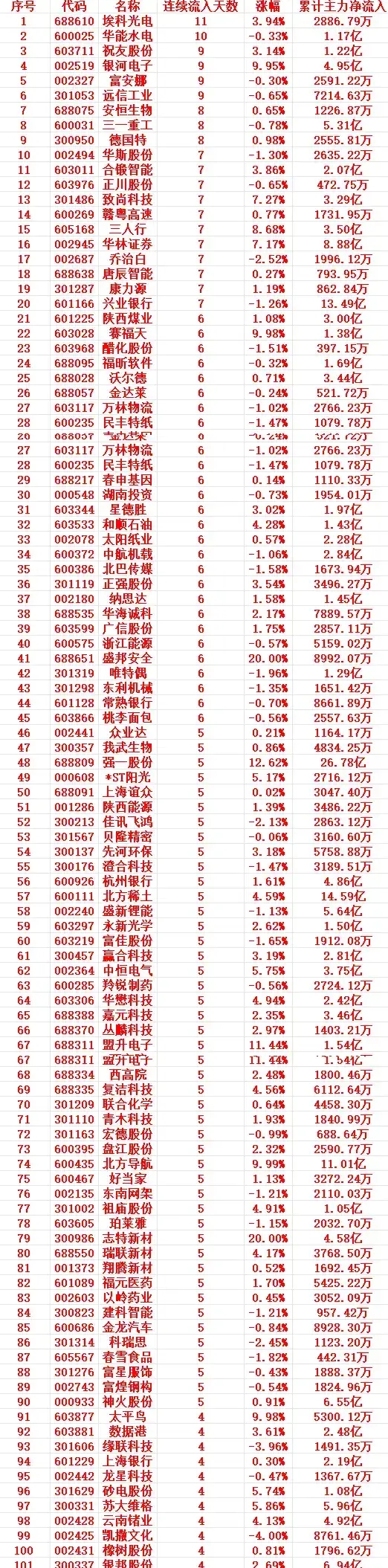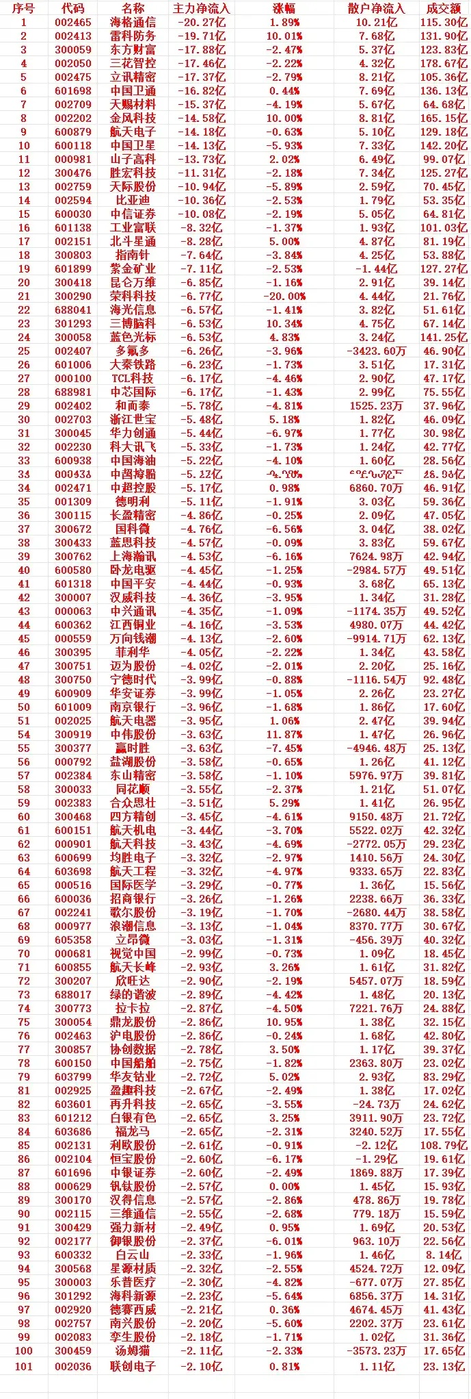 1月7号,主力连续多日,不间断买入100名!1月7号,收盘主力机构大幅卖出100