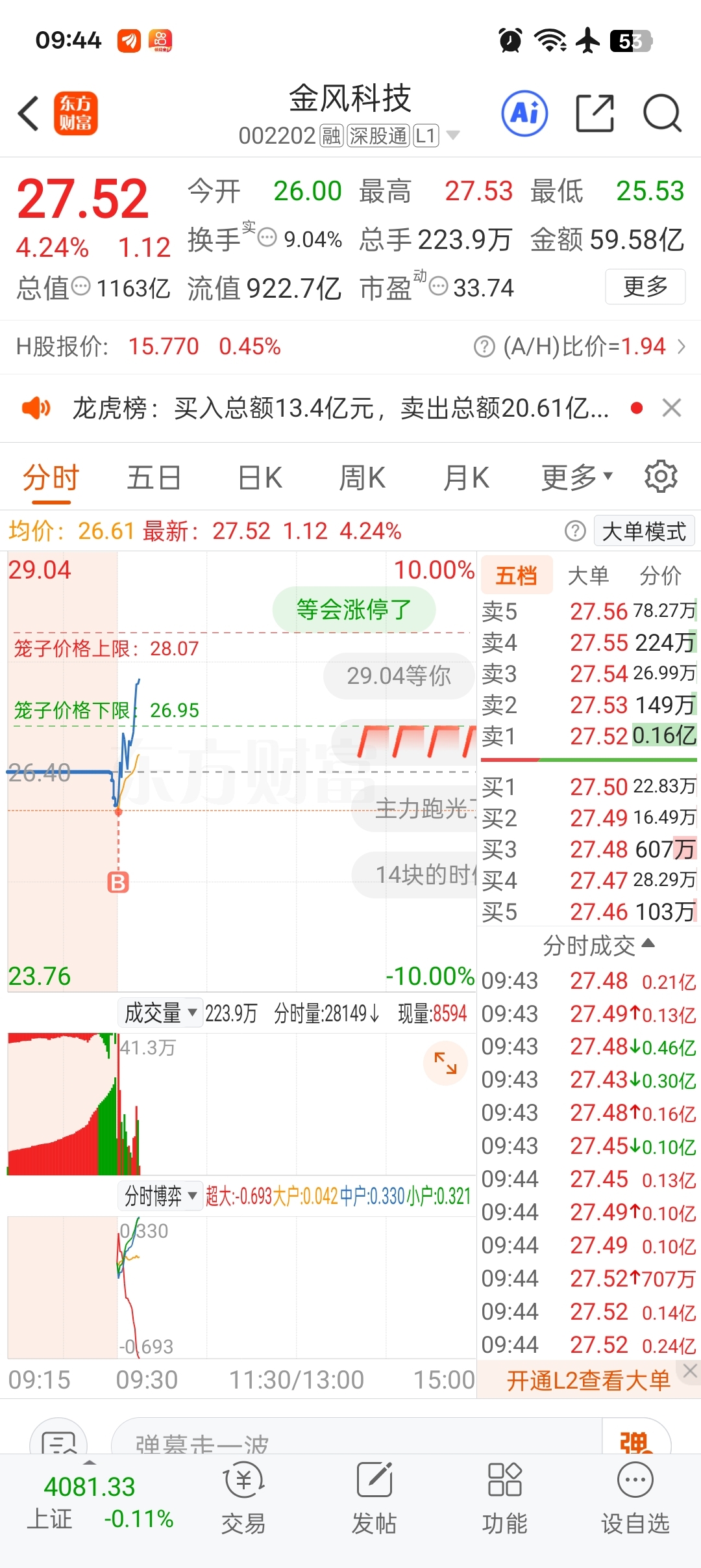 今作:中核科技昨日未上板,今日早盘拉高已出,看好商业航天低位大容量票金风科技