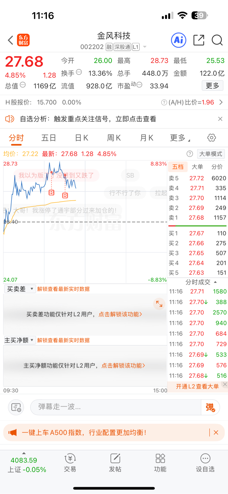 昨天涨4个点时候的金风喊我进 没舍得割肉, 今天进金风就崩了我3个点。最近太想吃板了从不追高的我 有点疯狂。