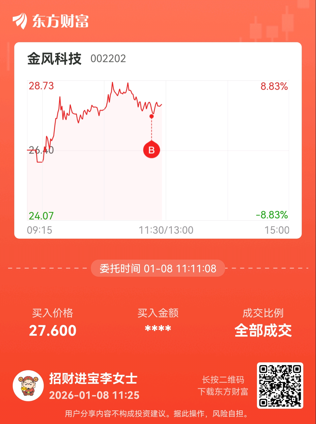 温馨提示: 1.根据《证券法》规定,禁止编造、传播虚假信息或者误导性信息,扰乱证券市场;2.用户在本社区发表的所有资料、言论等仅代表个人观点,与本网站立场无关,不对您构成任何投资建议。用户应基于自己的独立判断,自行决定证券投资并承担相应风险。《东方财富社区管理规定》