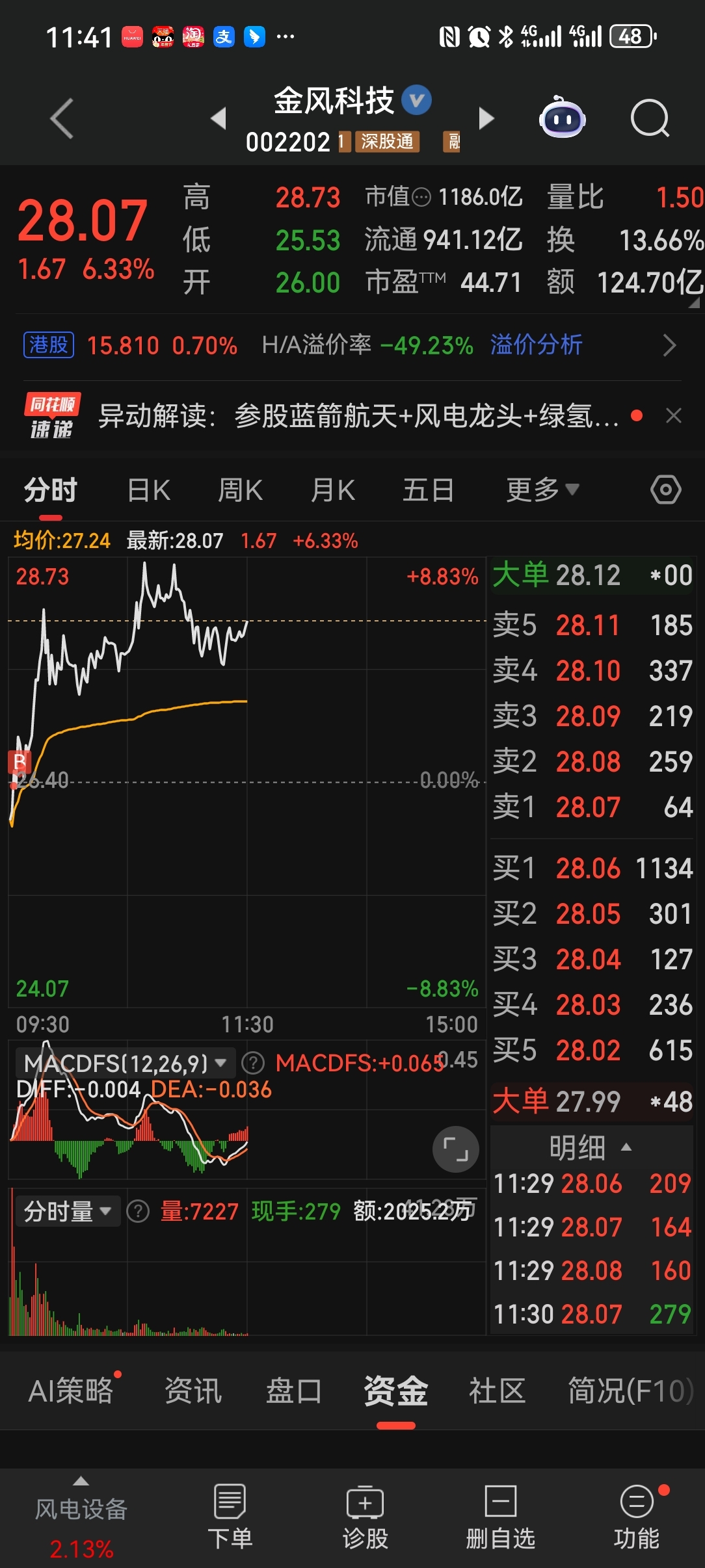 $金风科技(SZ002202)$ 今天上车金哥,是看目前航发大哥在压异动3个点,而你的空间最大,各方大佬都在里面折腾,看好你哦,有通宇在前面顶着你下午就能回封