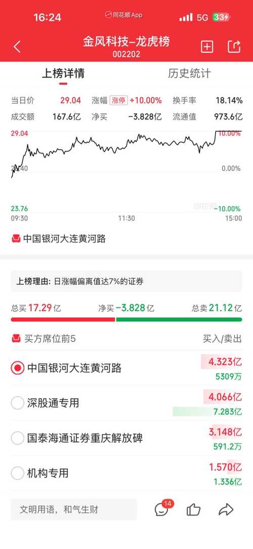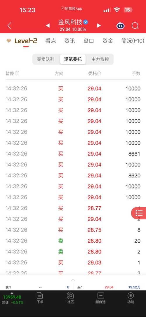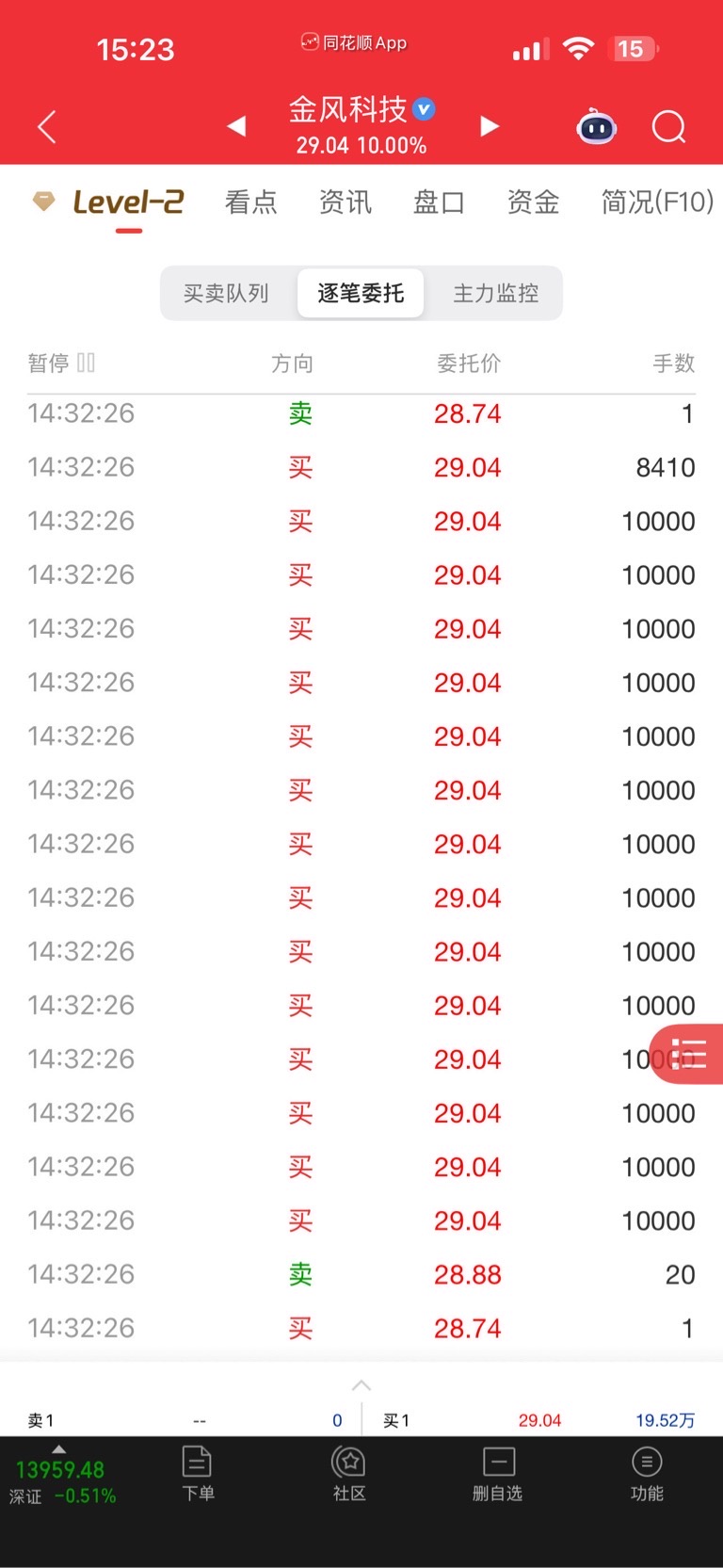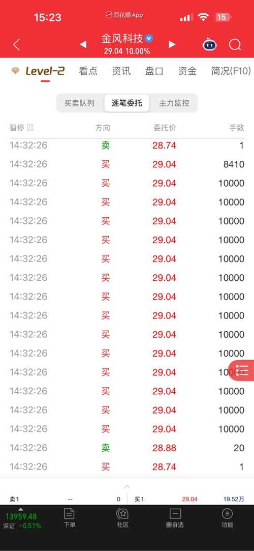 $金风科技(SZ002202)$ 14点32分26秒29.04成交了148410手,148410×29.04=4309826.4,正好对应陈小群的4.3亿买单,看来小群板上吃了不少货啊,看来他对这票很有信心。打板的瞬间另一账户买了107281手(图三)107281×29.04=3115440.24正好对应买三的金额,买一买三今天成本都在涨停价。$中国卫星(SH600118)$ $信维通信(SZ300136)$