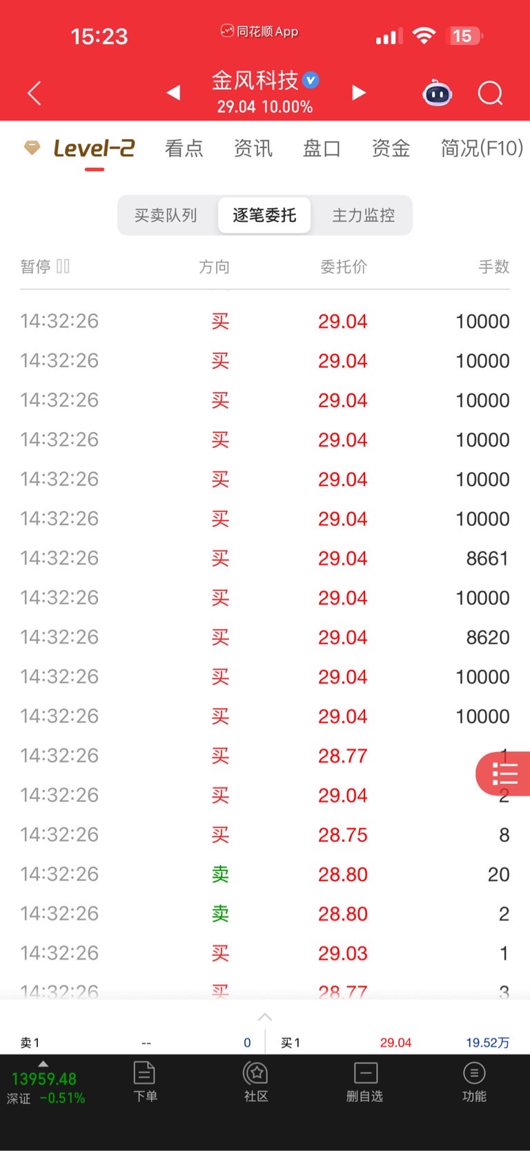 14点32分26秒29.04成交了148410手,148410×29.04=43