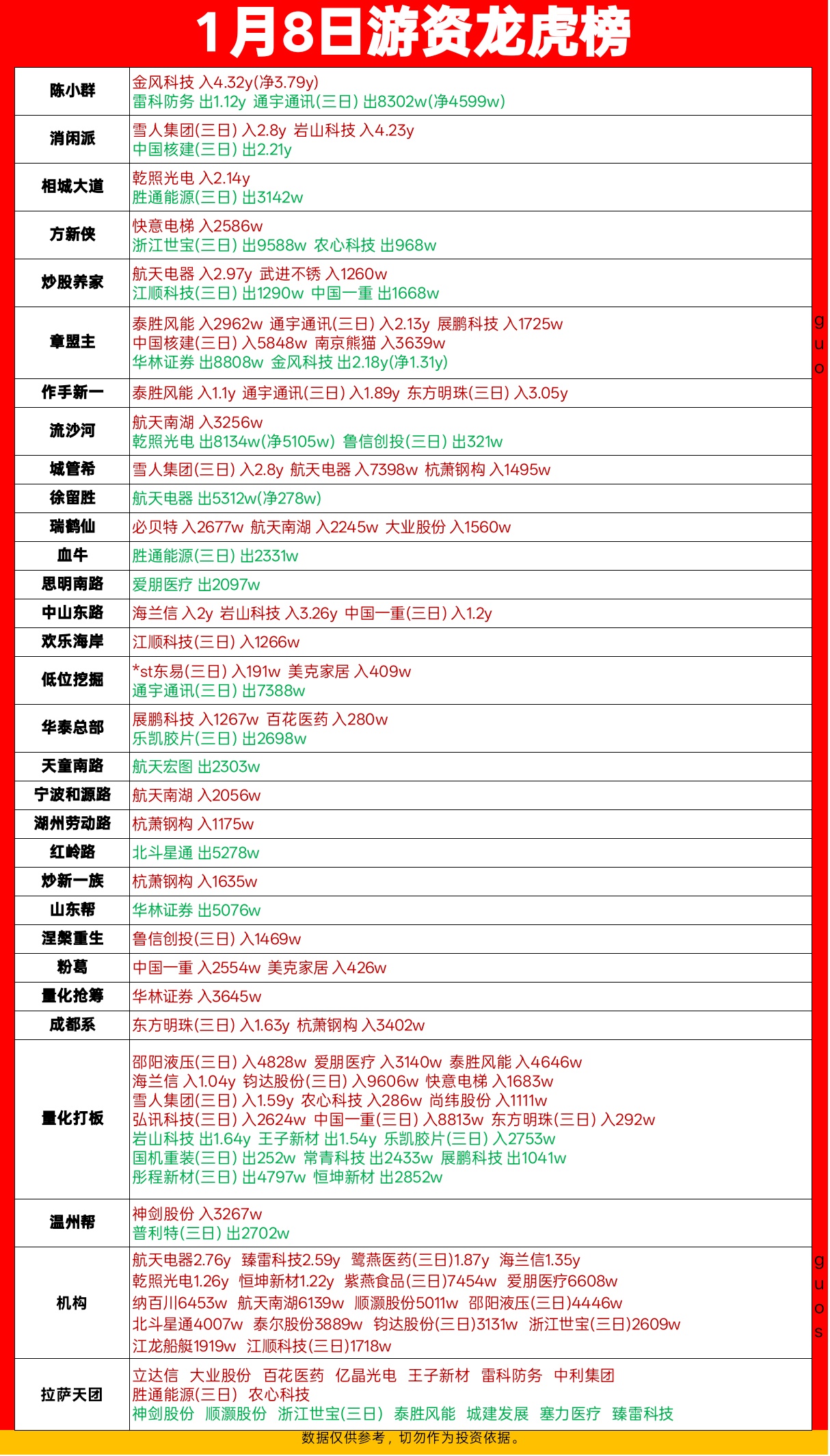 1.8游资龙虎榜,群总出手了这个。