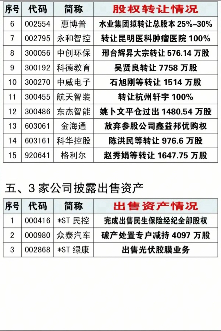 四、15家公司股权转让,寻求合作
