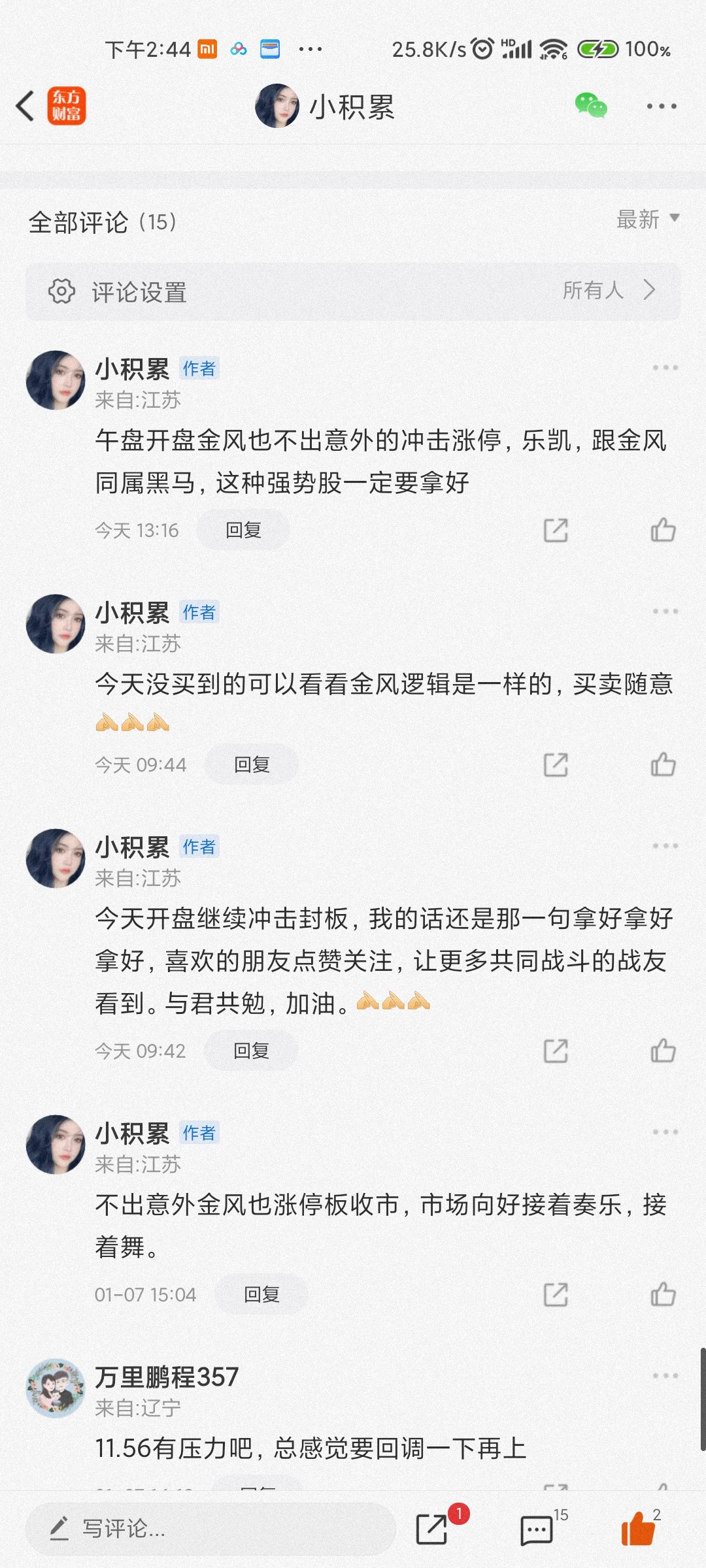 不出所料,金风开盘就是一字。跟着的帖子已经30cm的大肉。接着奏乐接着舞。