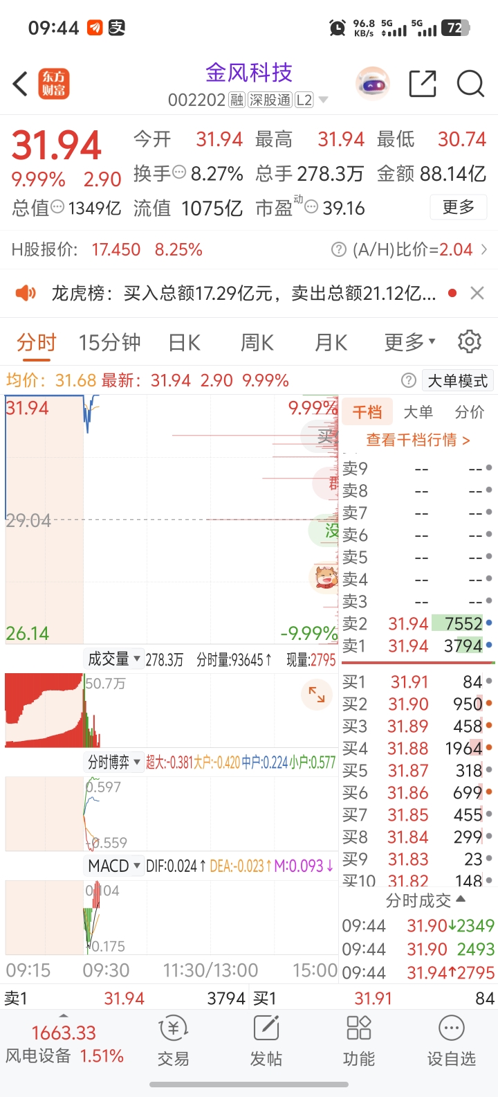 金银童子,金风科技今天的走势图和昨天的银河电子一样的暴力洗盘,最后一秒暴力拉升,