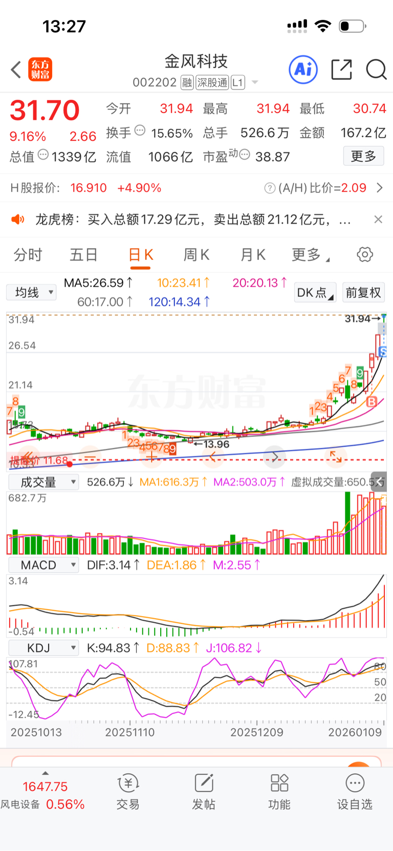 $金风科技(SZ002202)$ 留下的发财。3天22个点。谢谢群哥