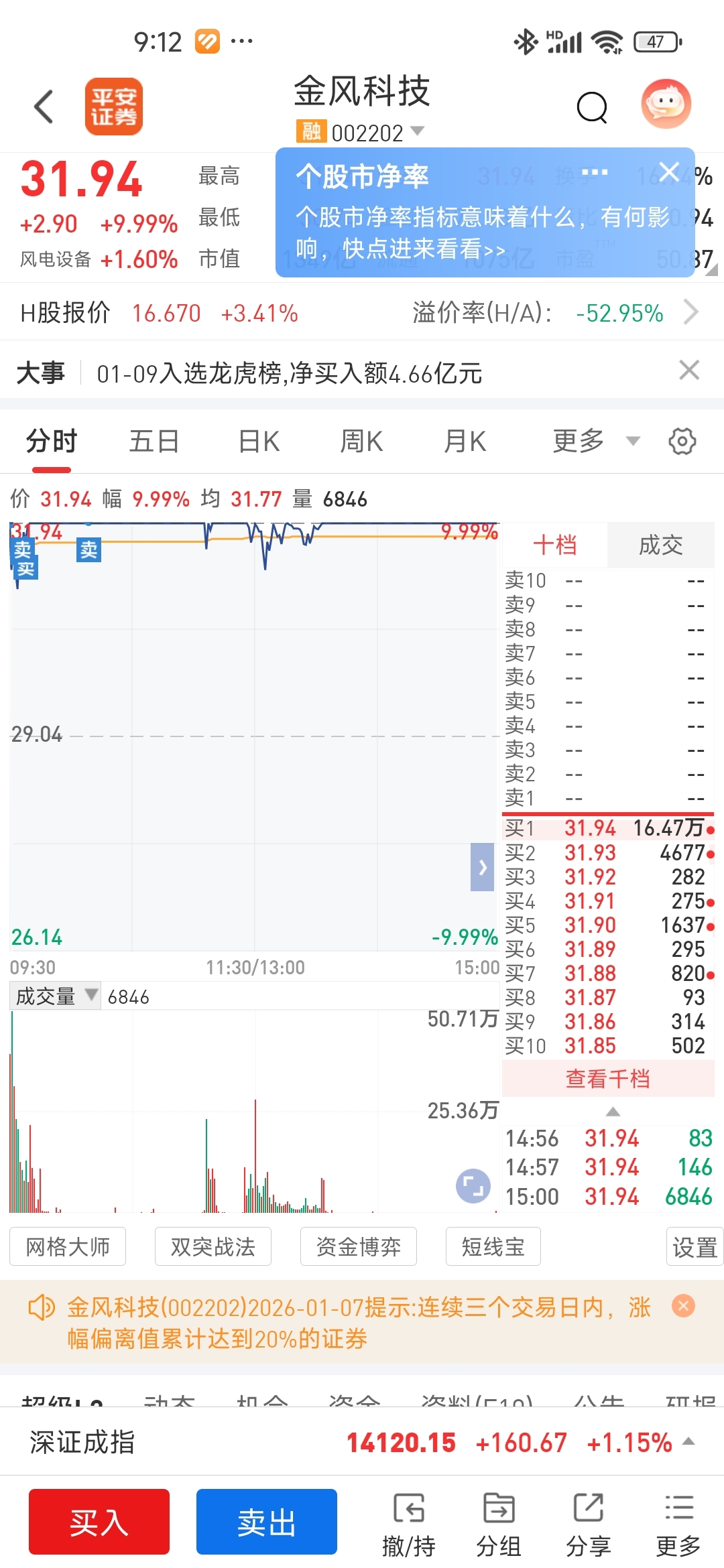 $金风科技(SZ002202)$ 全部卖出,一股不留,相对H股溢价率53%,要干也去干H股了,另外海兰信也不错