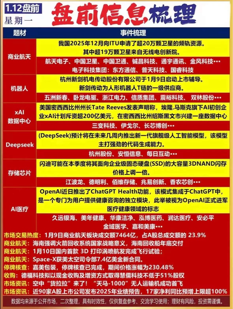 1月12日盘前信息梳理