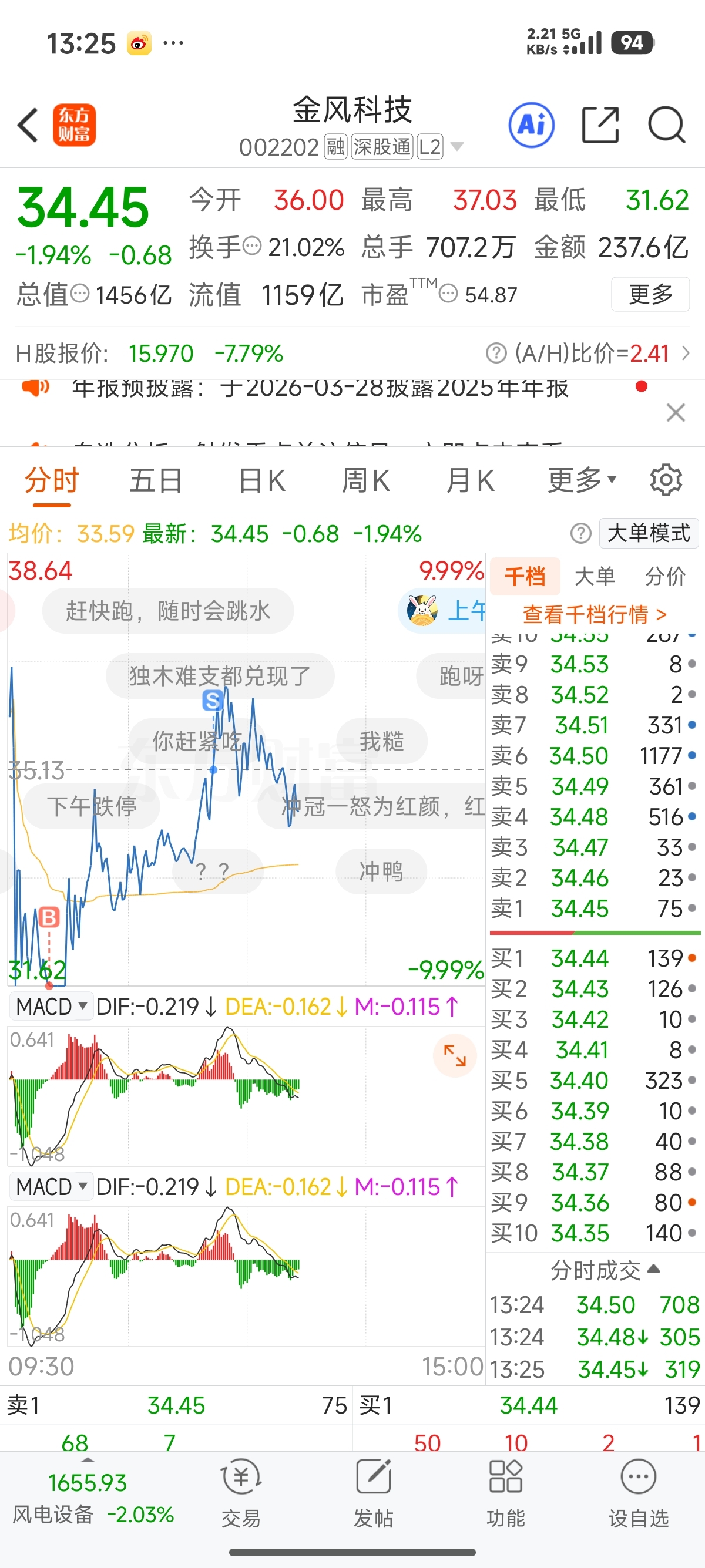 $金风科技(SZ002202)$ 你们做T了吗?